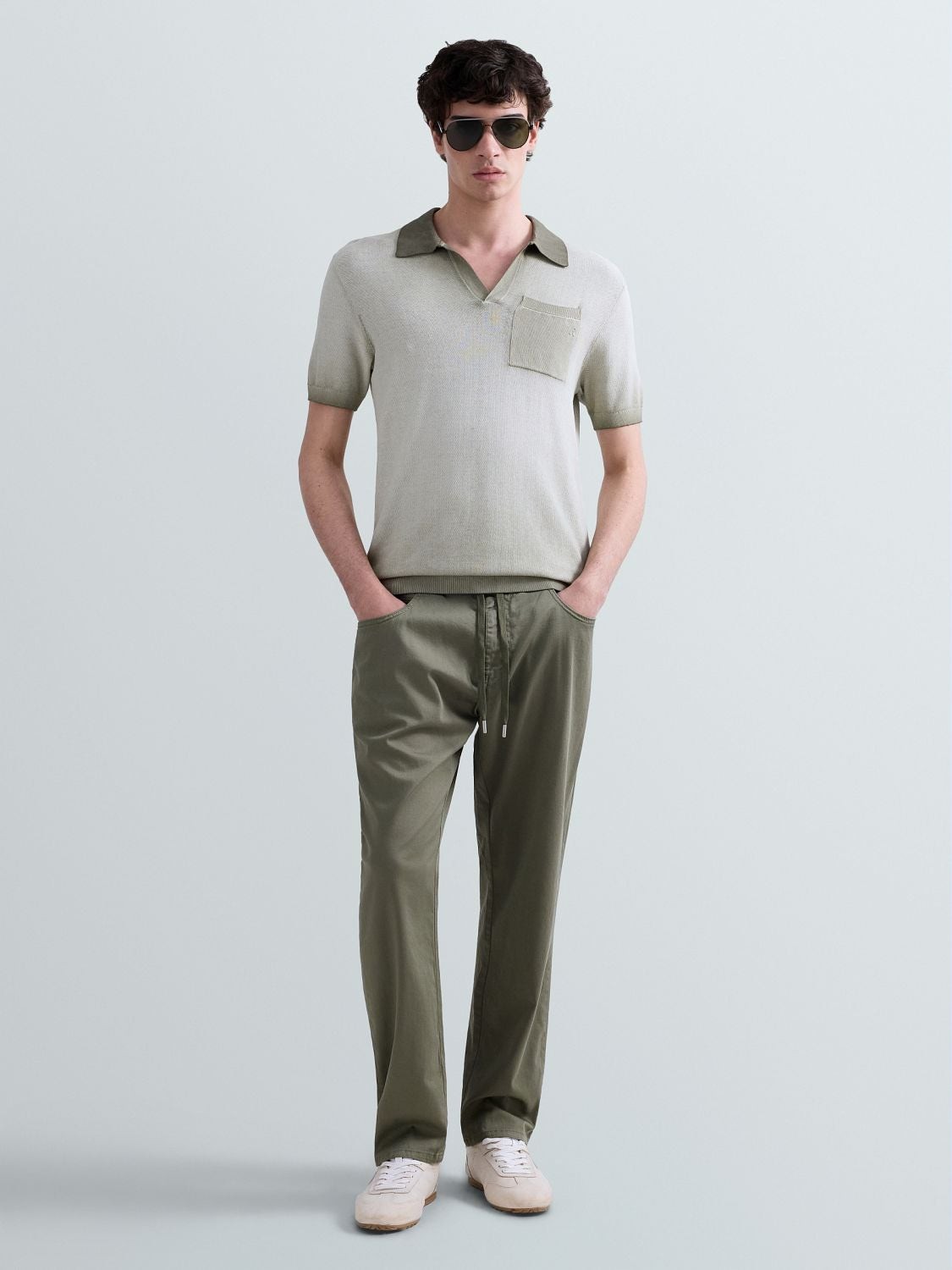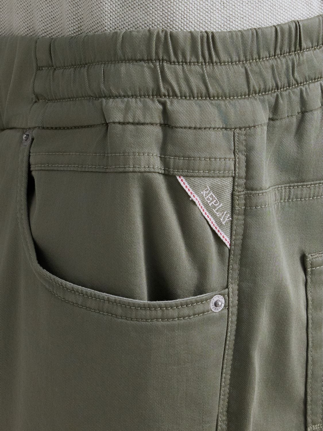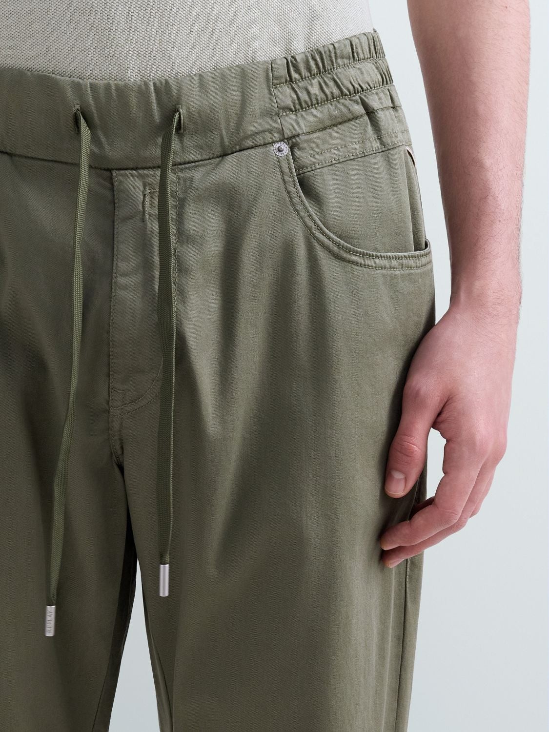 Features: Slim fit pants with elastic waist. 97% cot 3% el