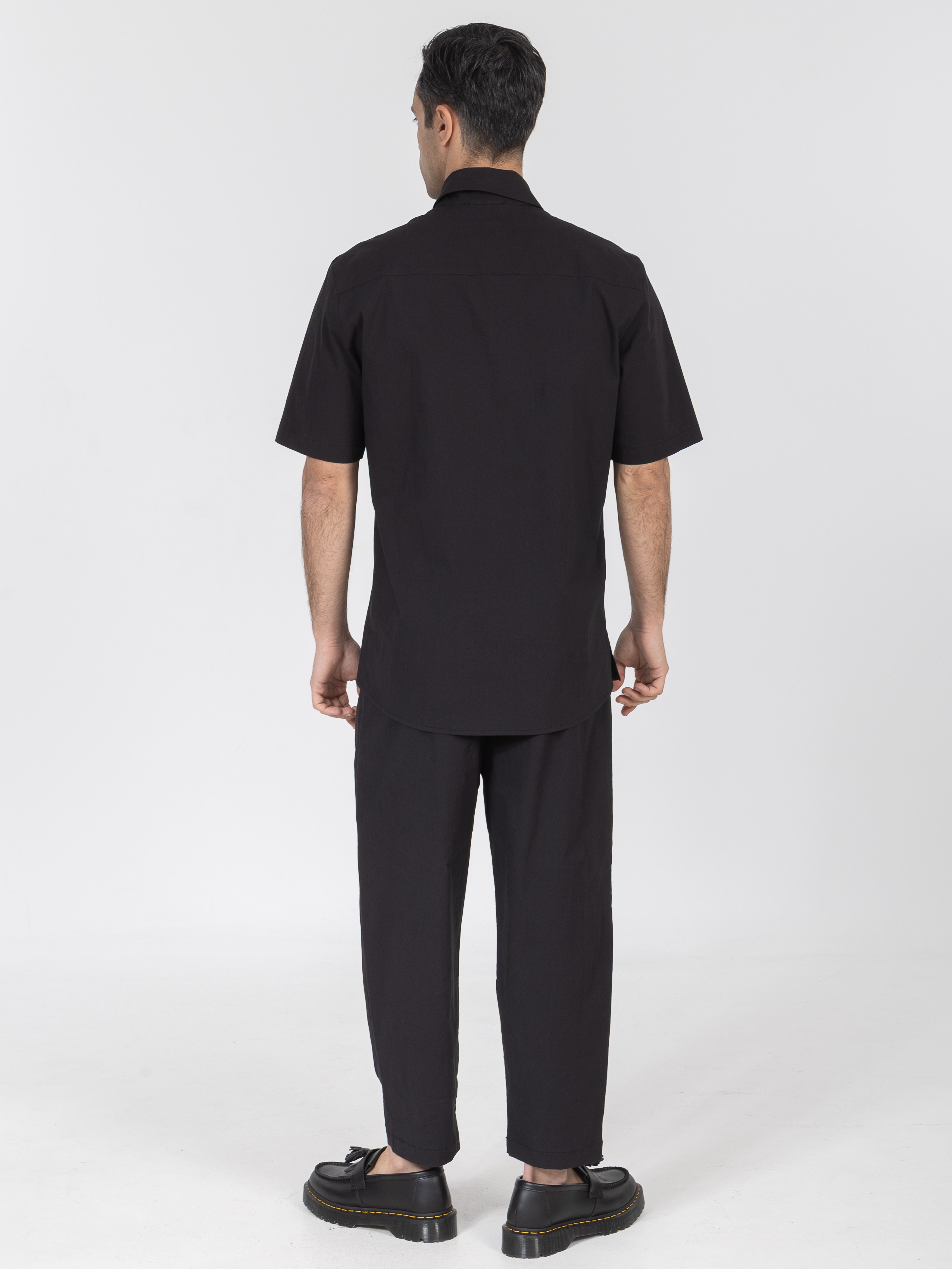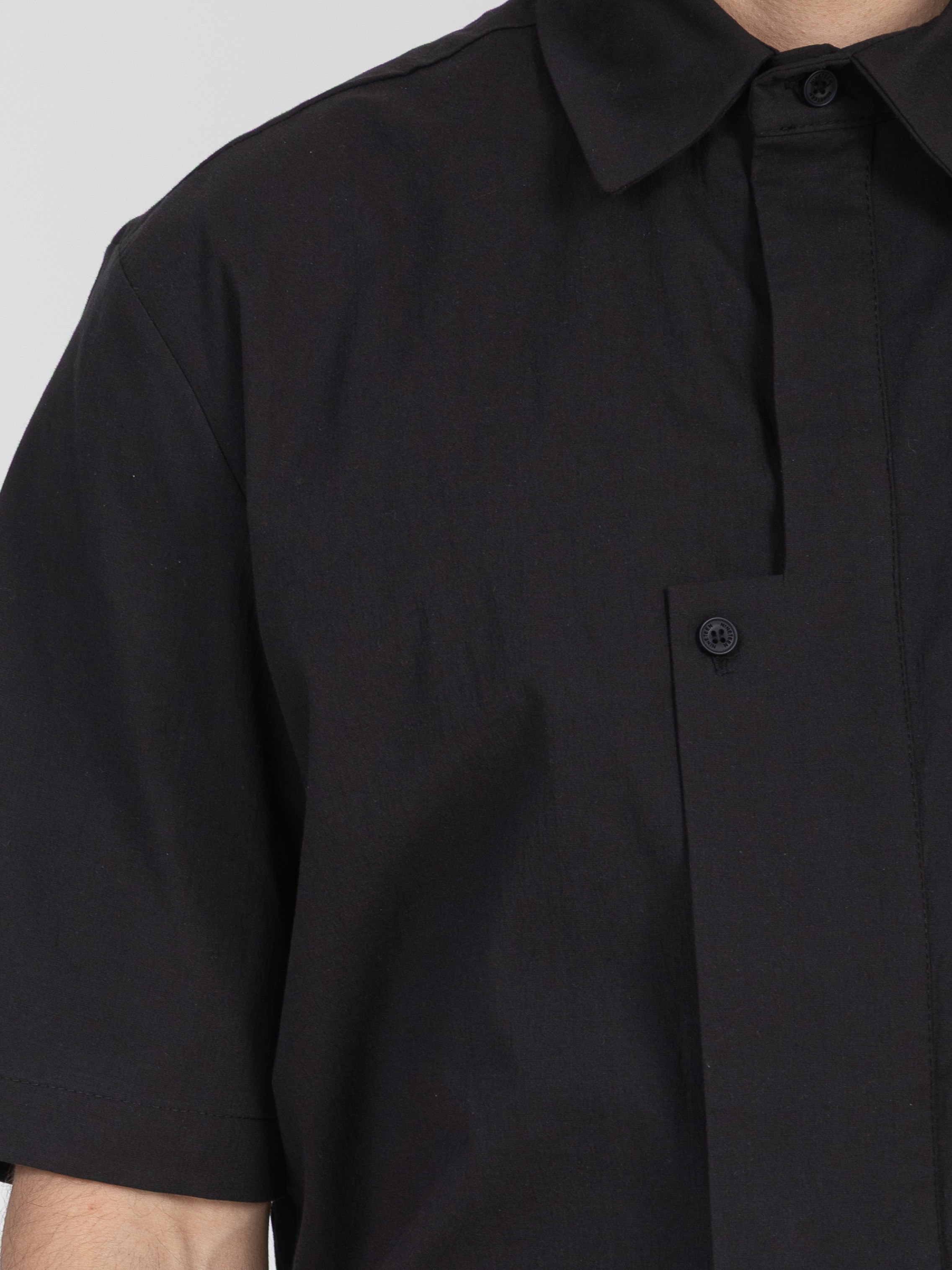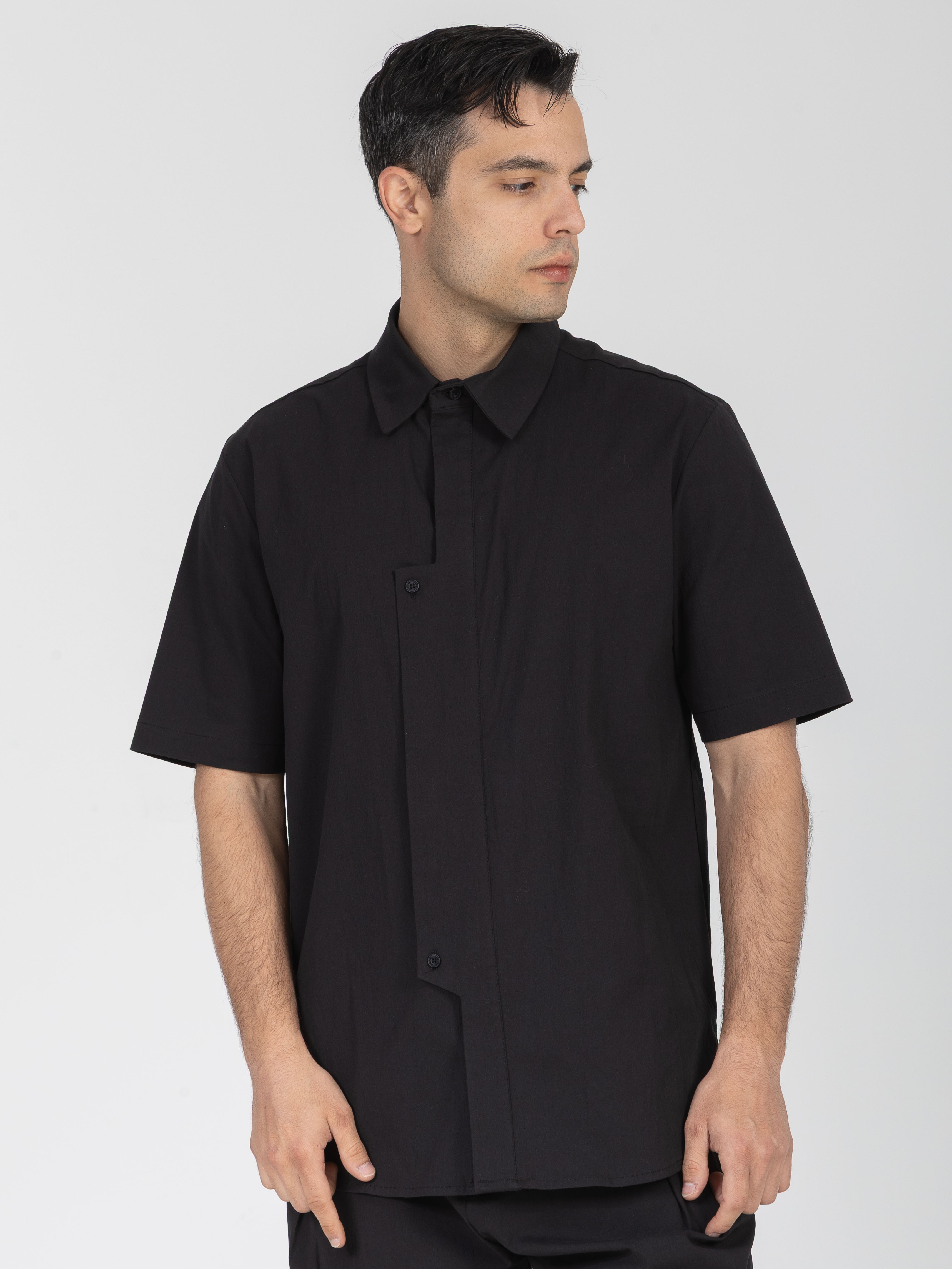 Features: Regular fit shirt with collar and hidden placket. 97% cot 3% el