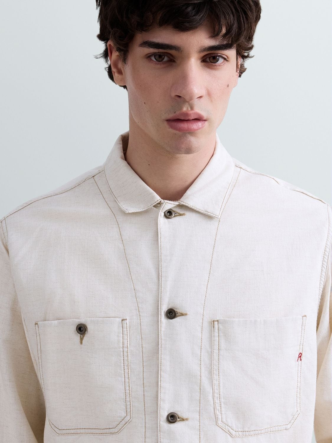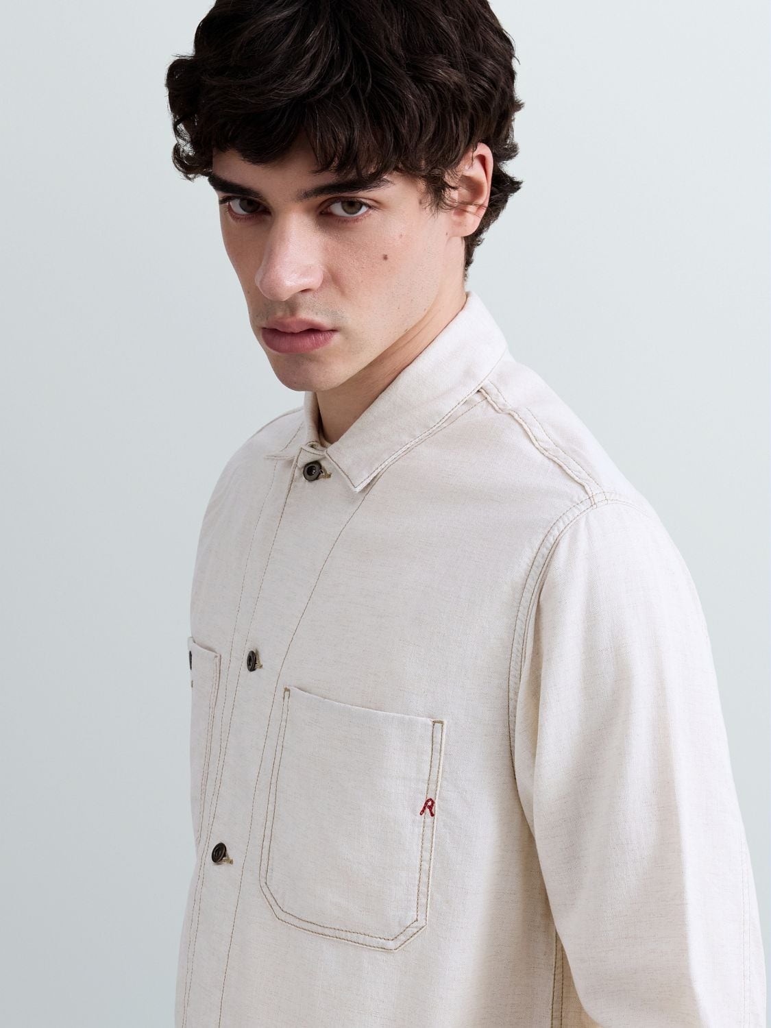 Features: Shirt - Jacket with collar in regular fit line with pockets on the chest. 64% cot 24% CLY 12% LI