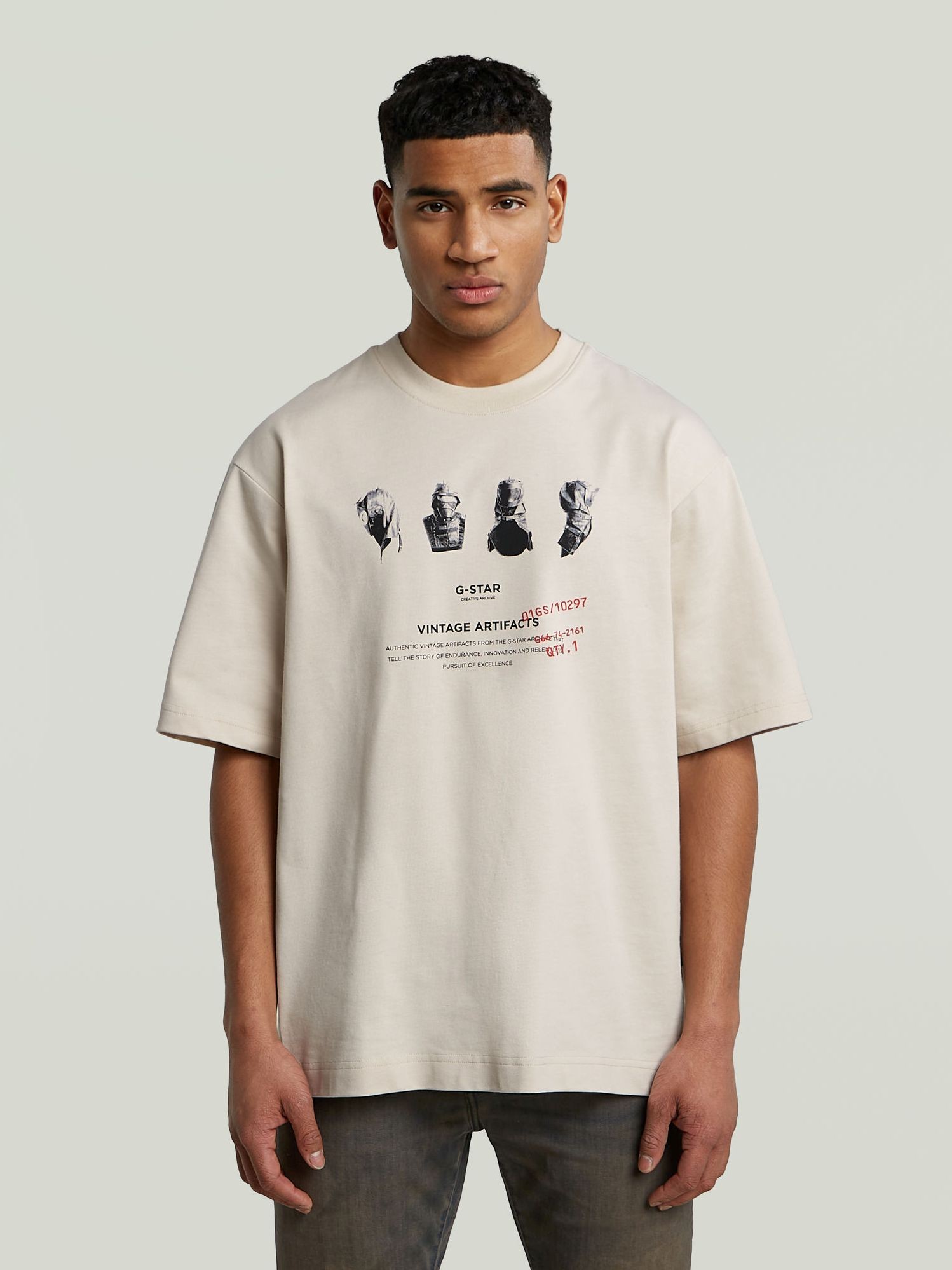 The Artifacts Boxy T-Shirt features an oversized fit with a round neckline, offering a relaxed and contemporary look. The graphic details on the front add a unique and artistic touch.