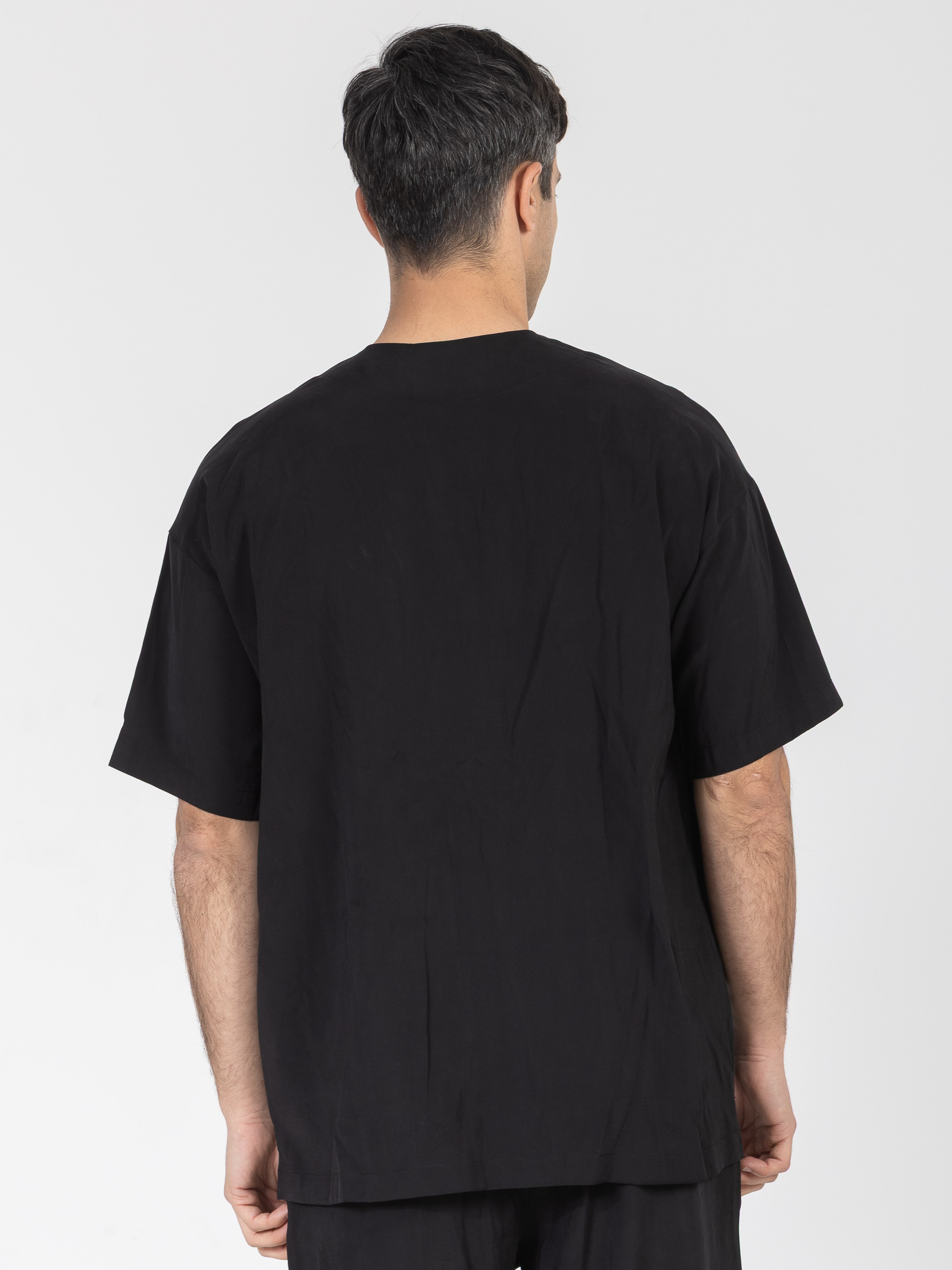 Features: T-shirt in regular fit line with V collar and buttons at the neck. 87% visc 13% el