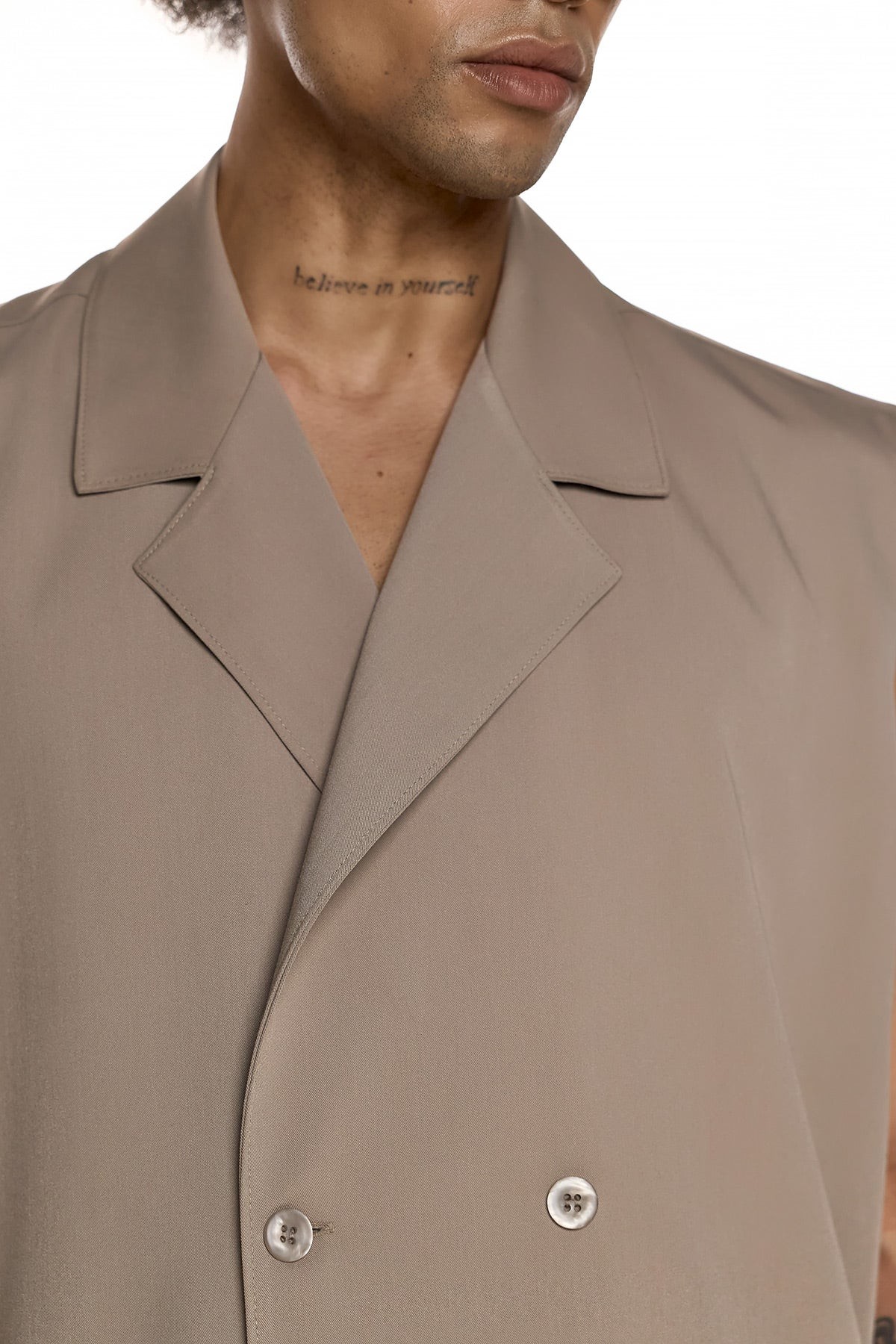 Architectural Fit & Premium Feel Constructed with a focus on clean lines and structural balance, the ATSUSHI vest features a double-breasted front that provides a secure, tailored fit. The sleeveless design allows for maximum versatility—perfect for a high-fashion look when worn solo or as a structured outer layer over a knit or basic tee.