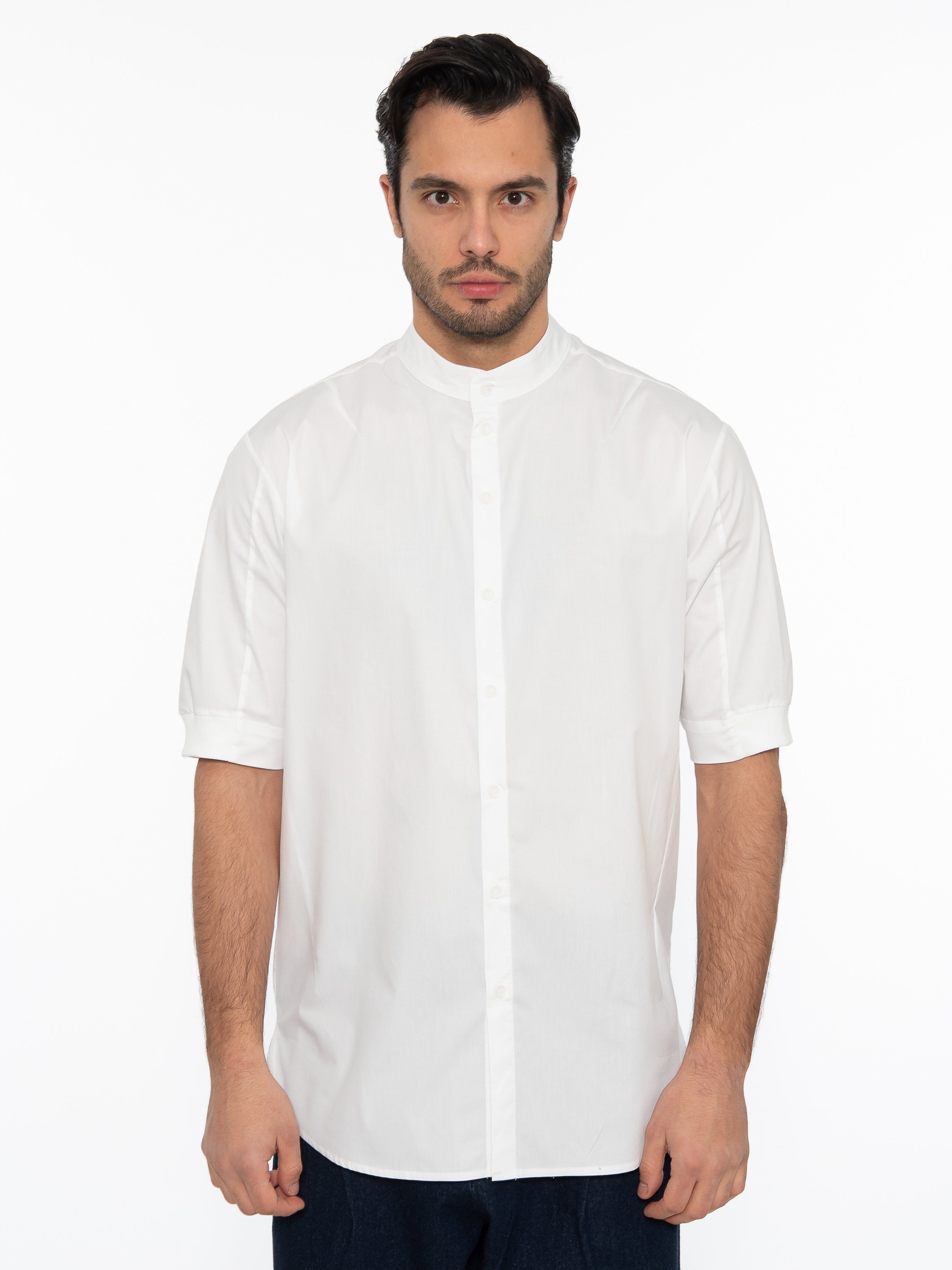 Features : Mao Short Sleeve Shirt in regular fit line with elastic on the sleeves and asymmetrical finish. 97% cotton 3% elastane