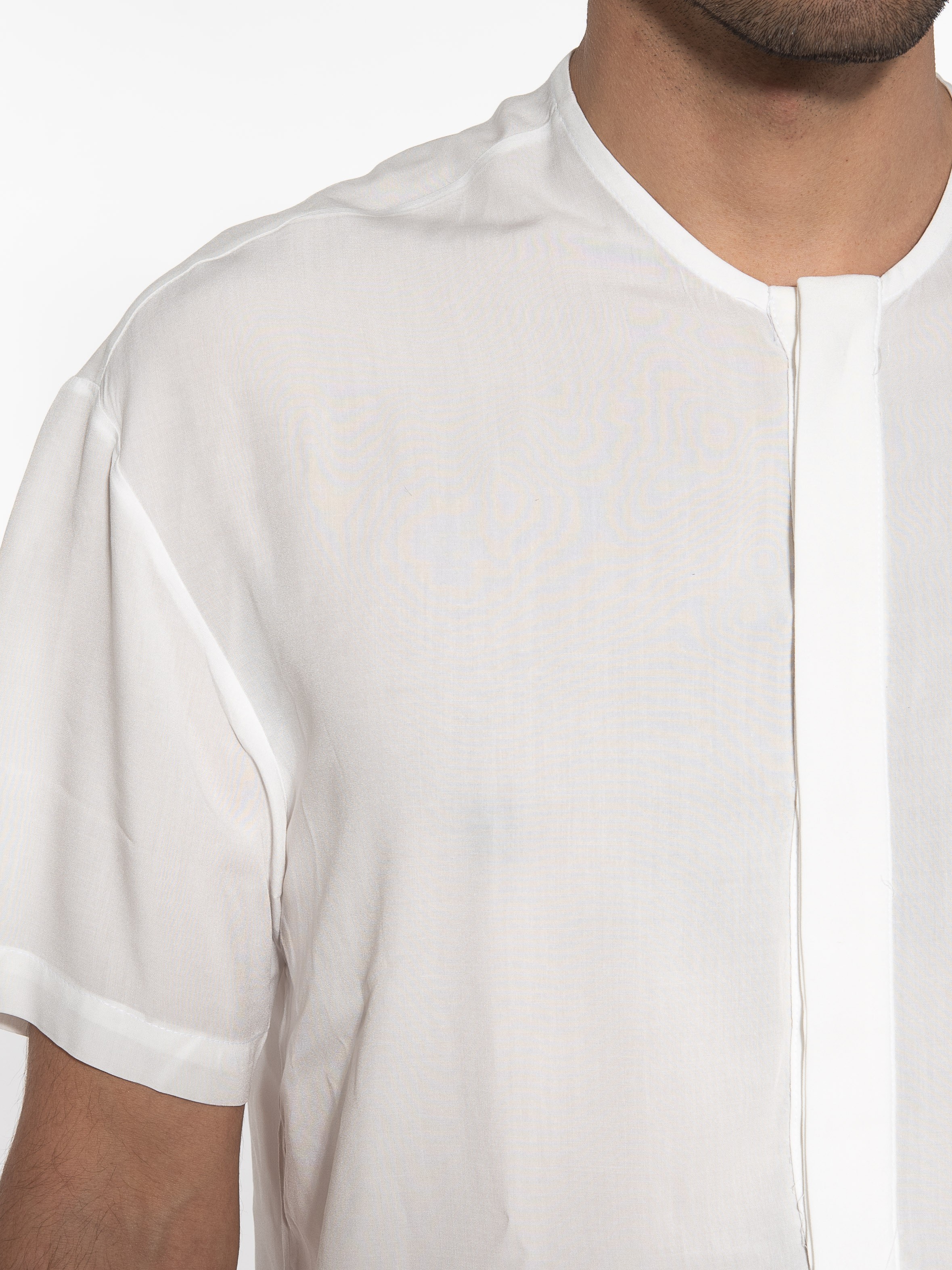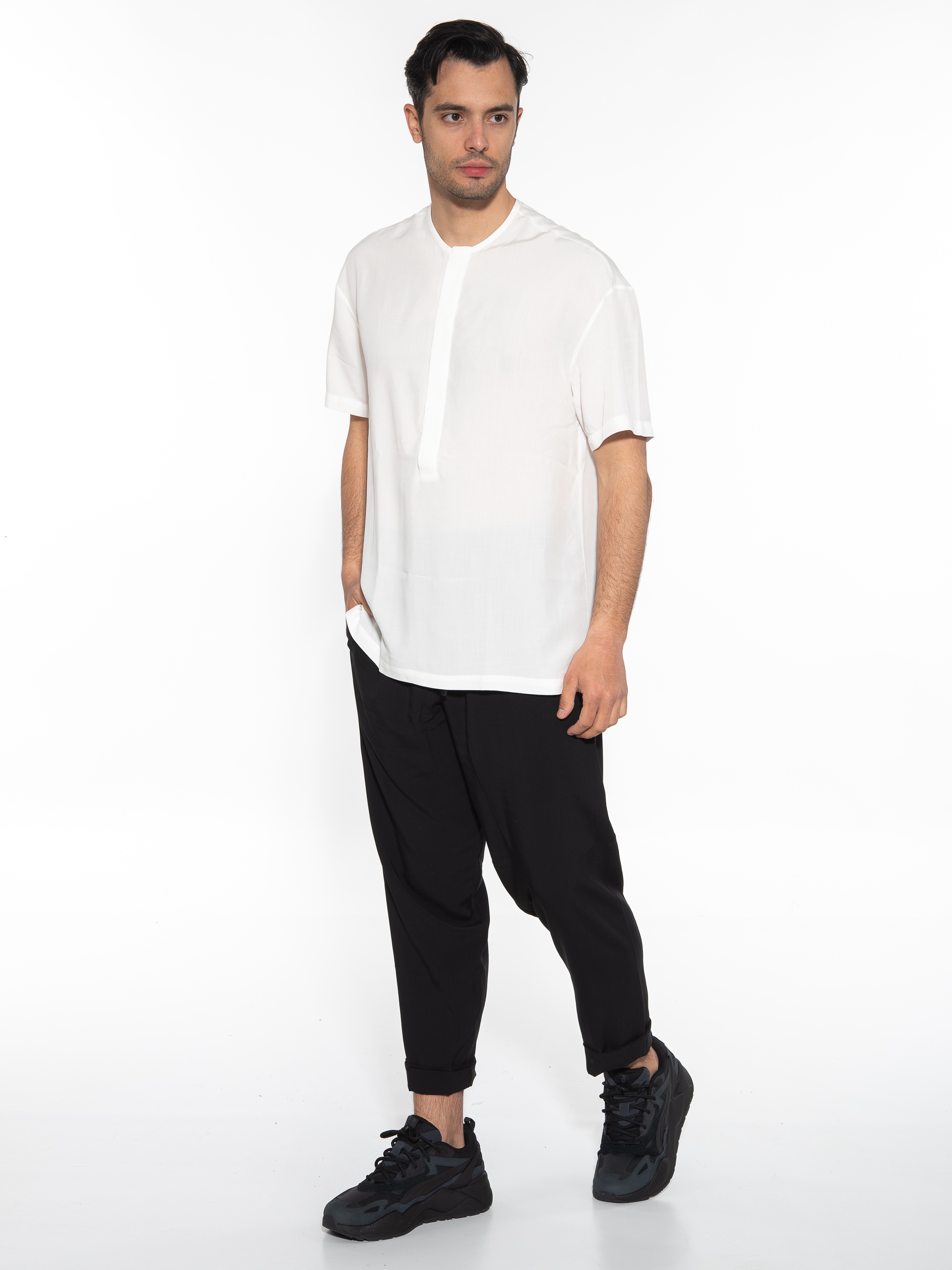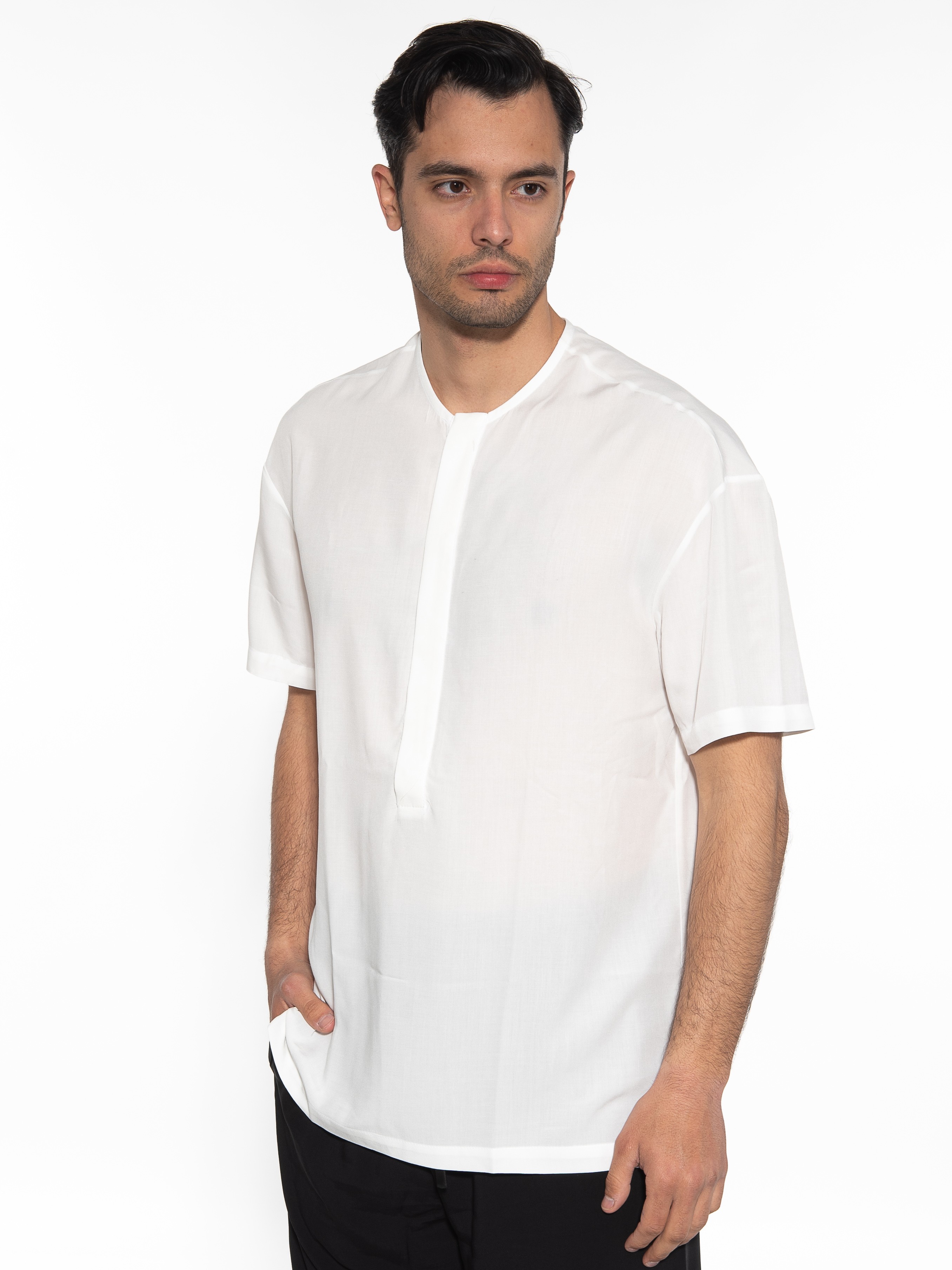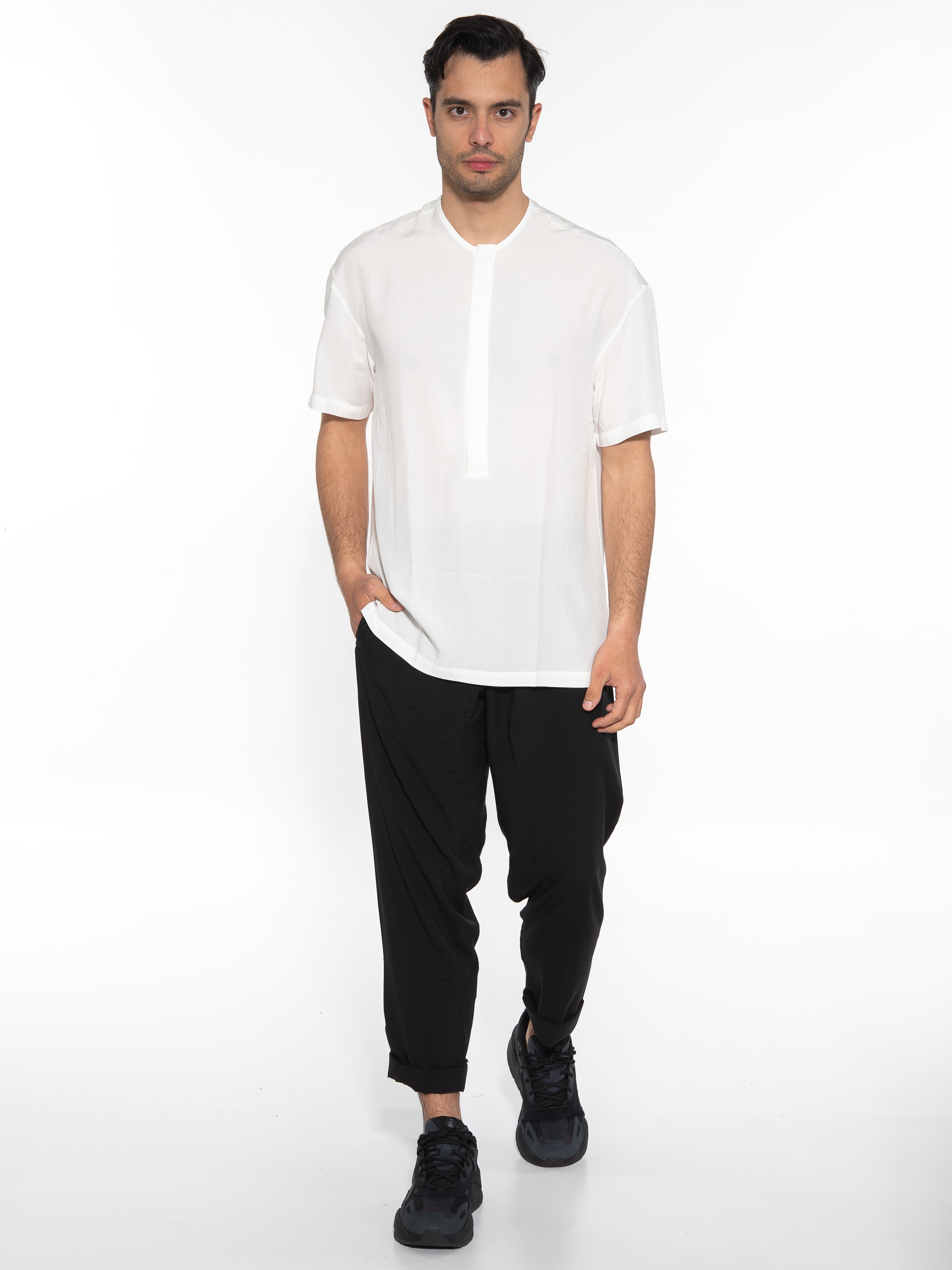 Characteristics : mao shirt in regular fit line with hidden pleats. 100% viscose