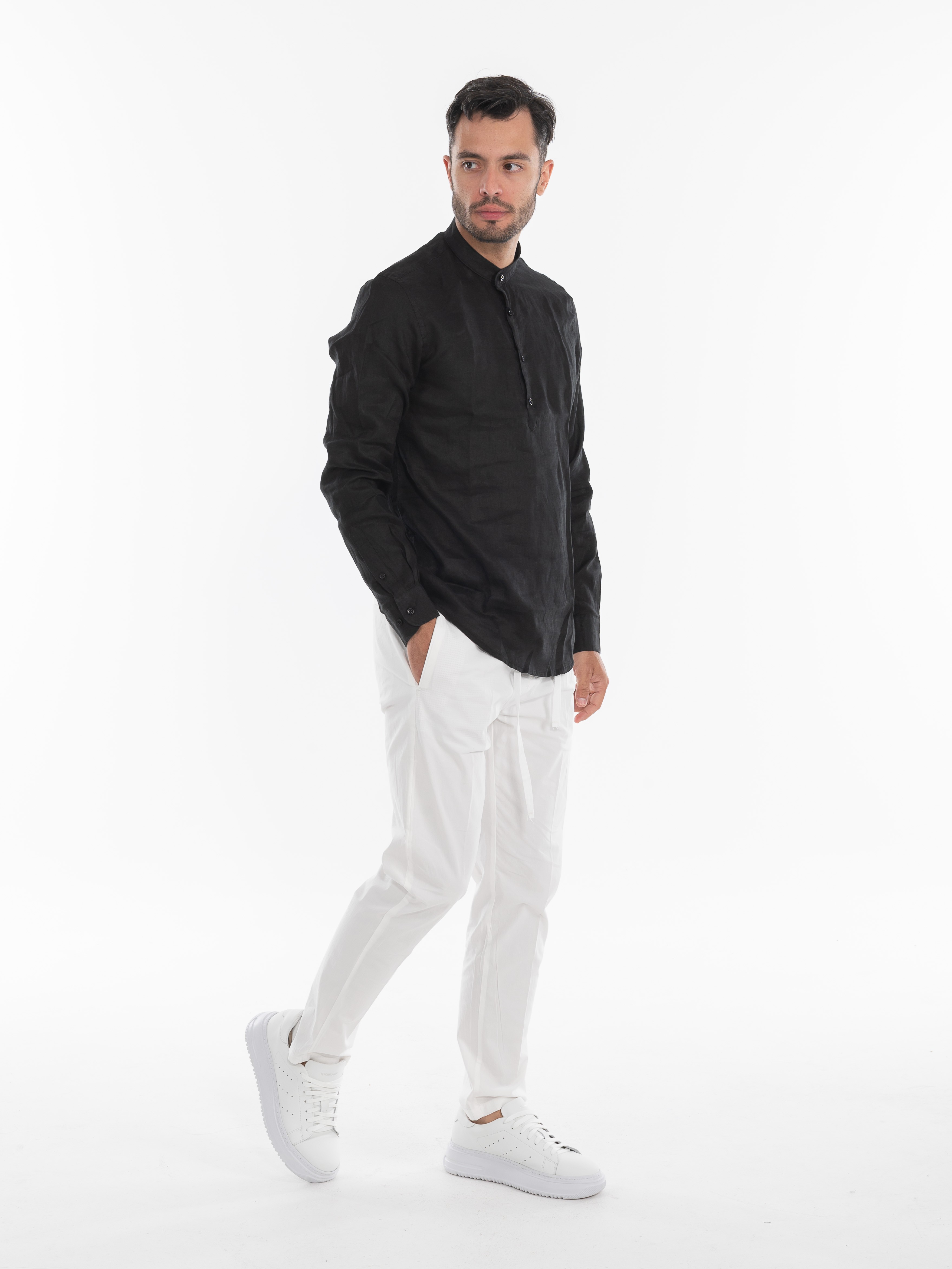 Characteristics : >: Linen mao shirt in regular fit line. 100% linen
