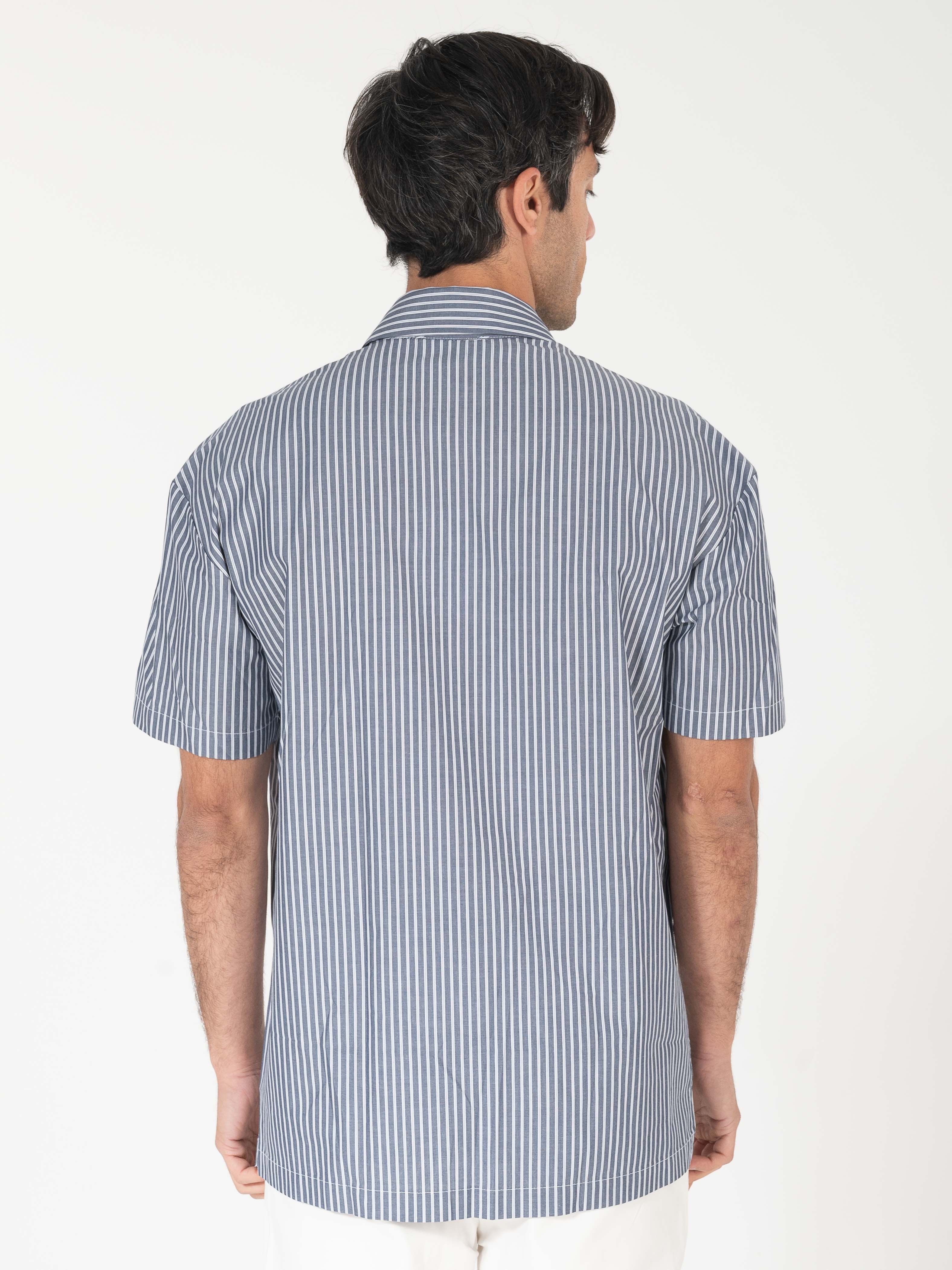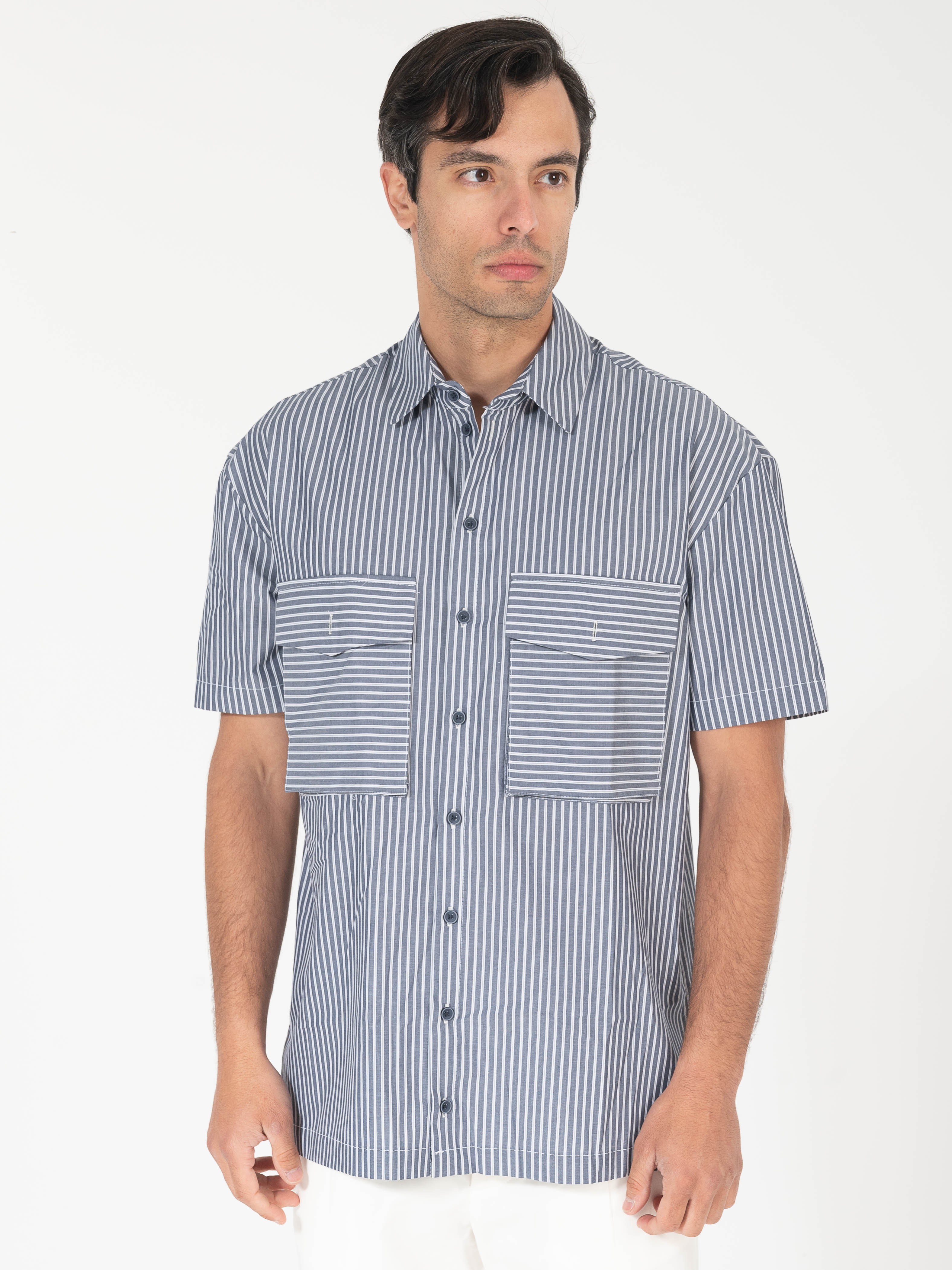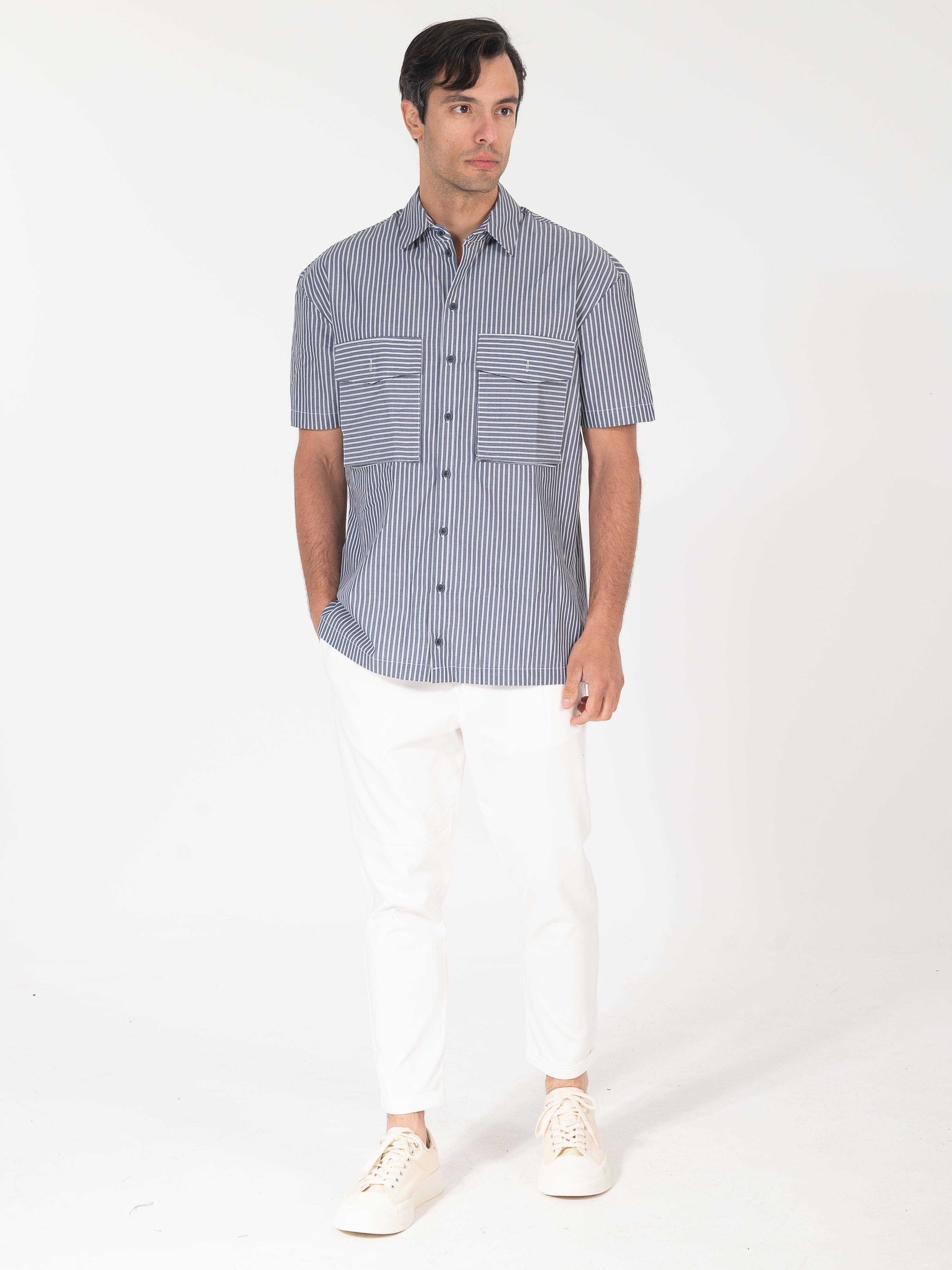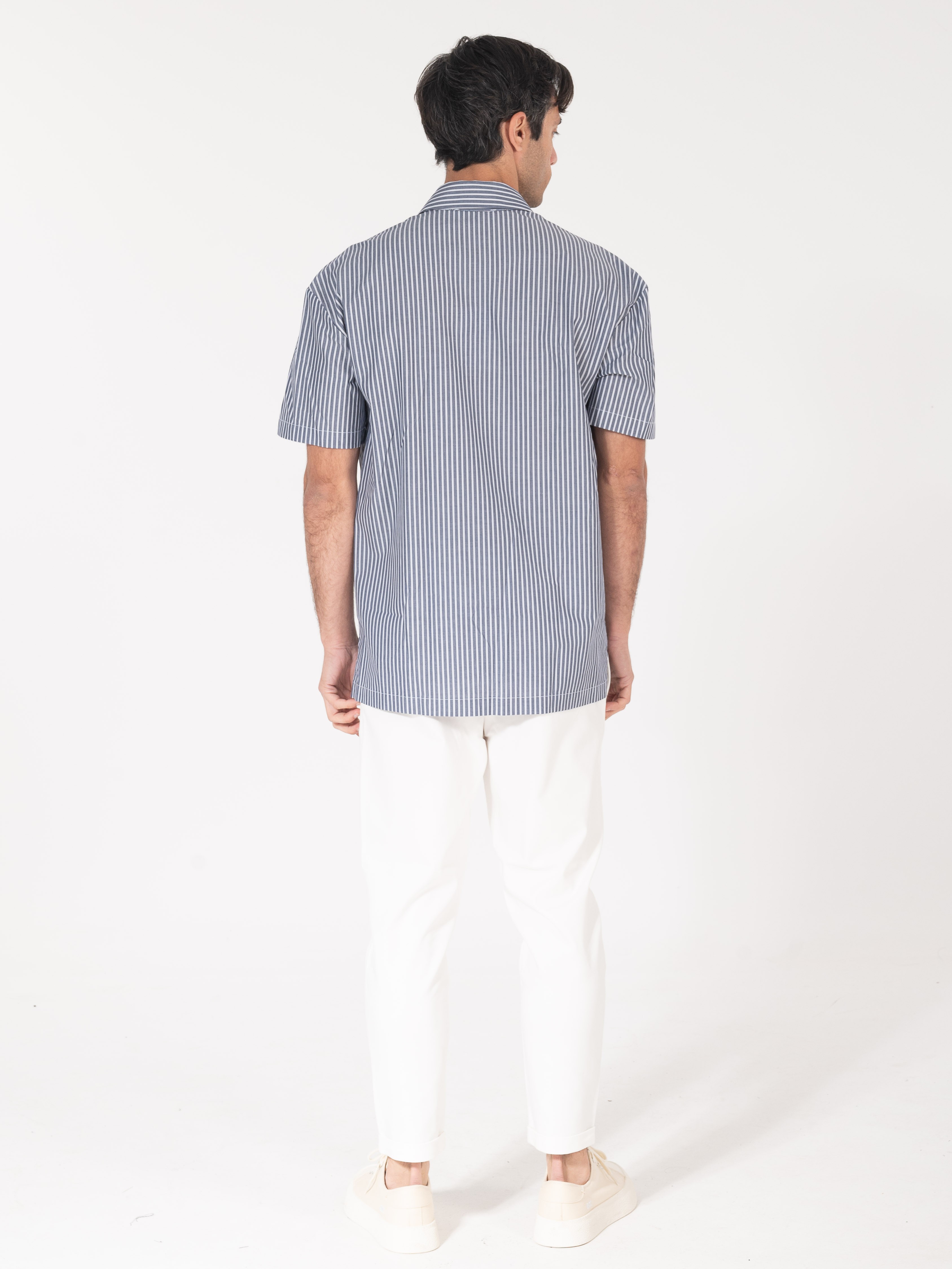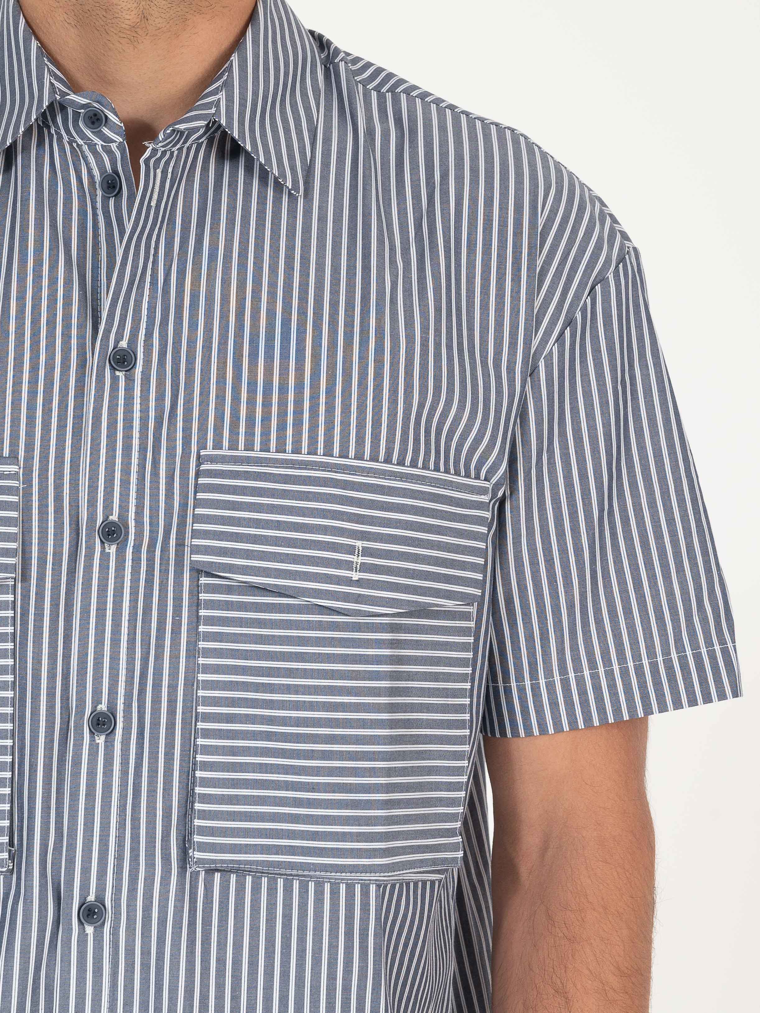 NINETEEN Πουκάμισο κοντομάνικο K25-1037 Μπλε - Λευκό