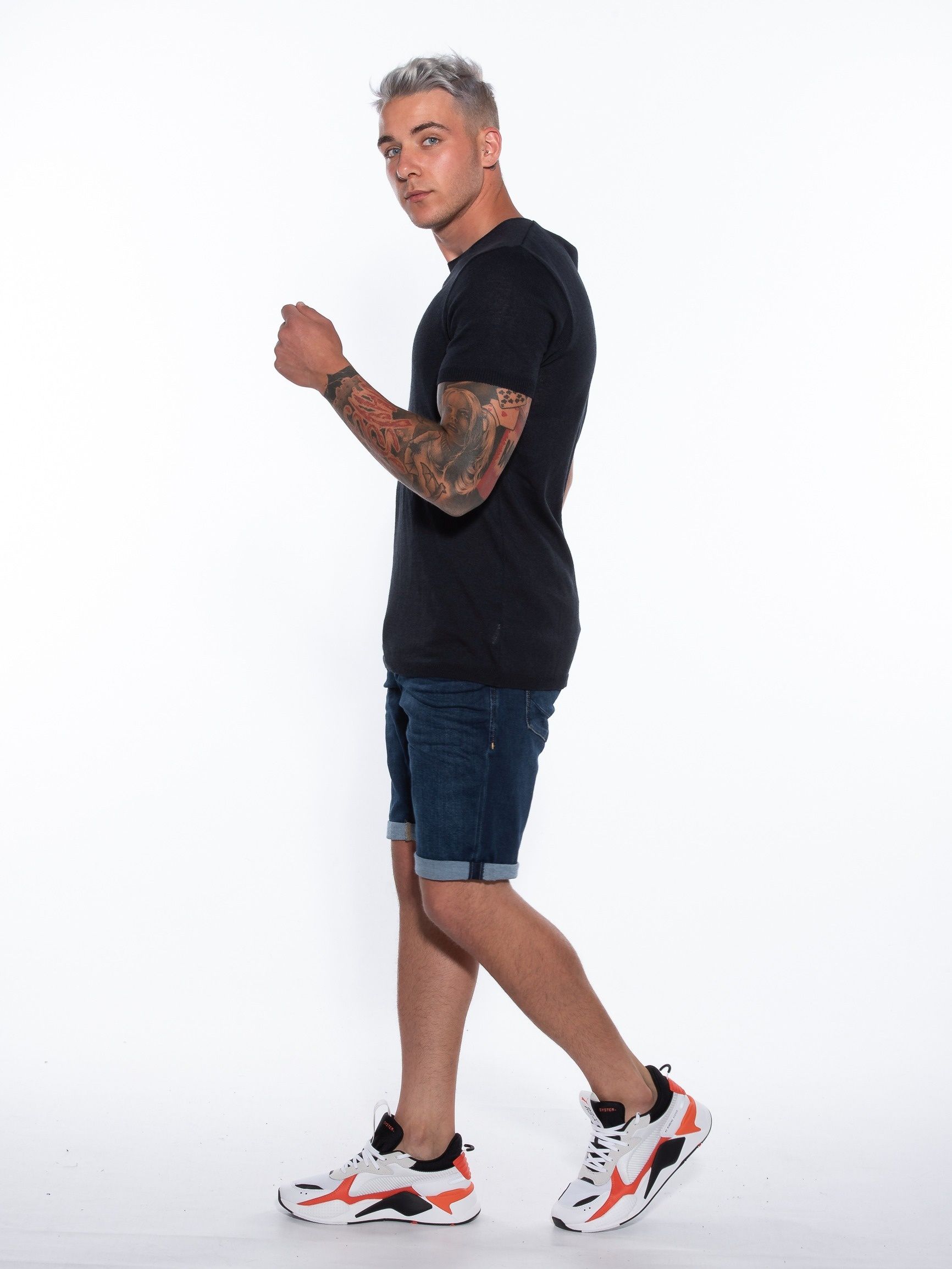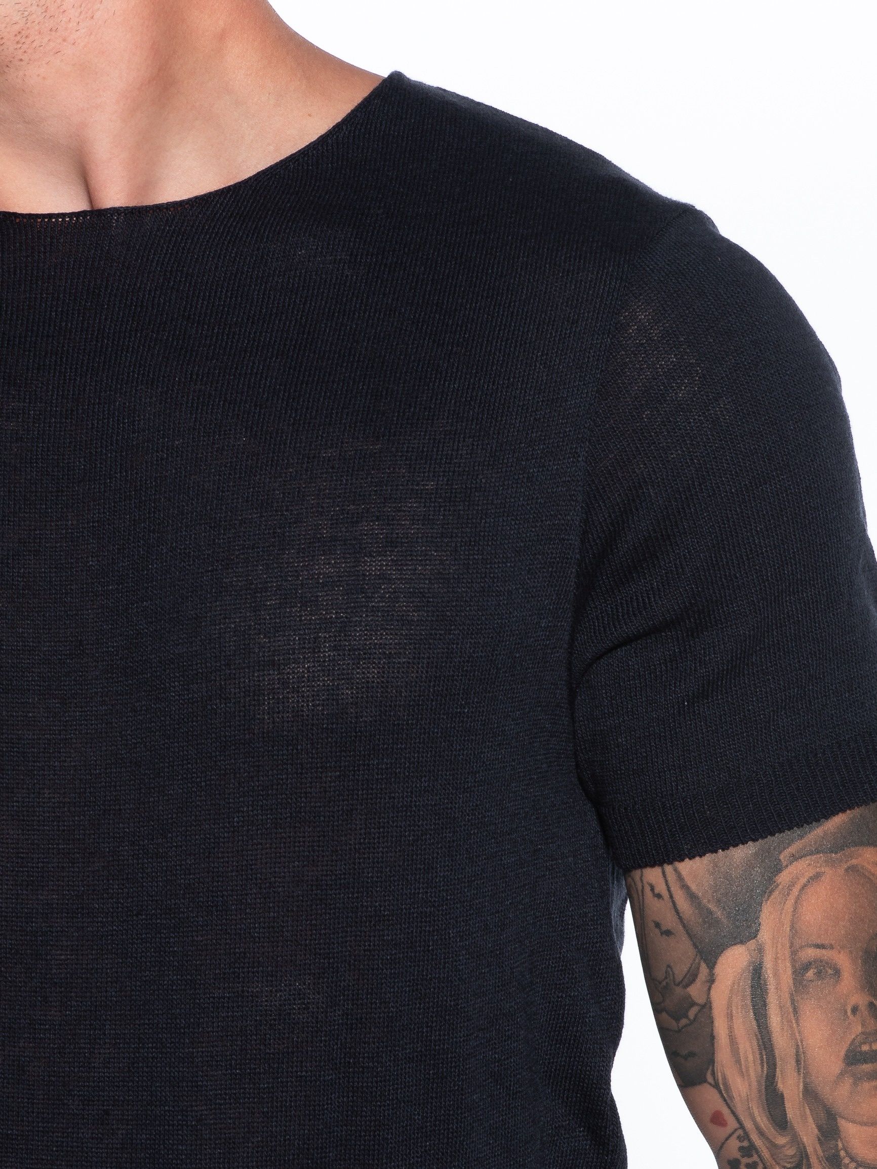 Features : Threaded T-shirt in slim fit line with elastic at the sleeves and at the end. 50% cotton 50% elastane