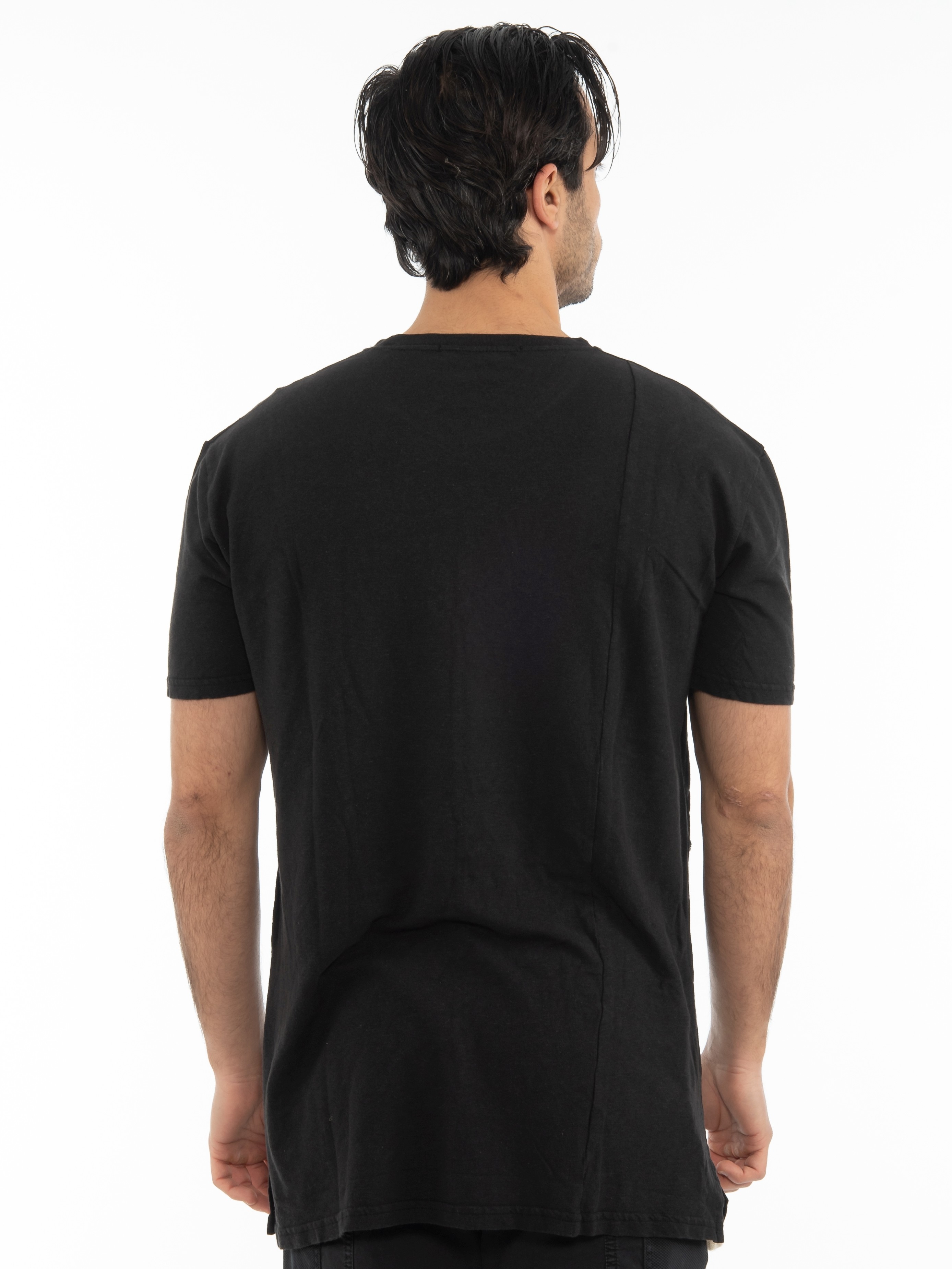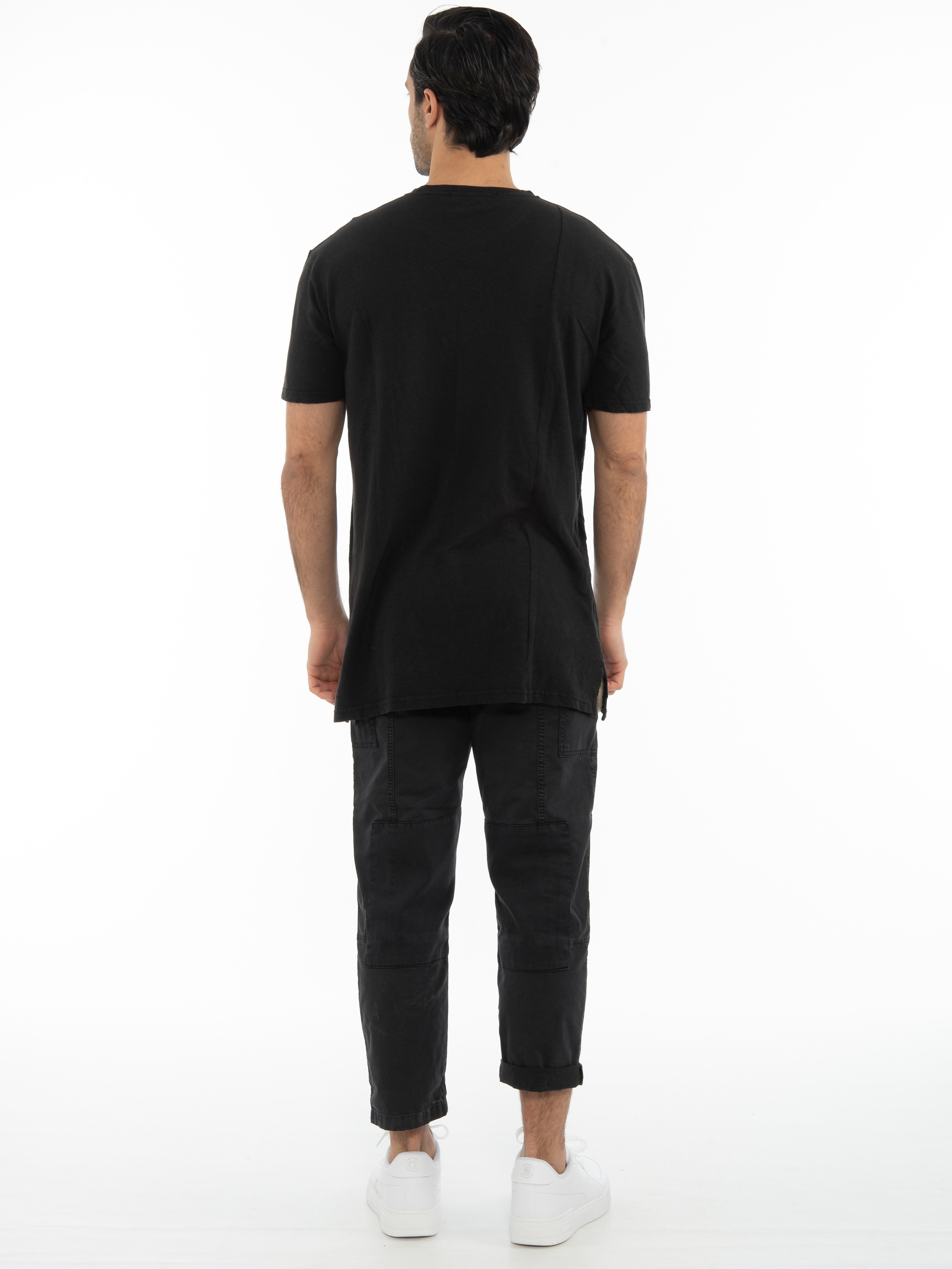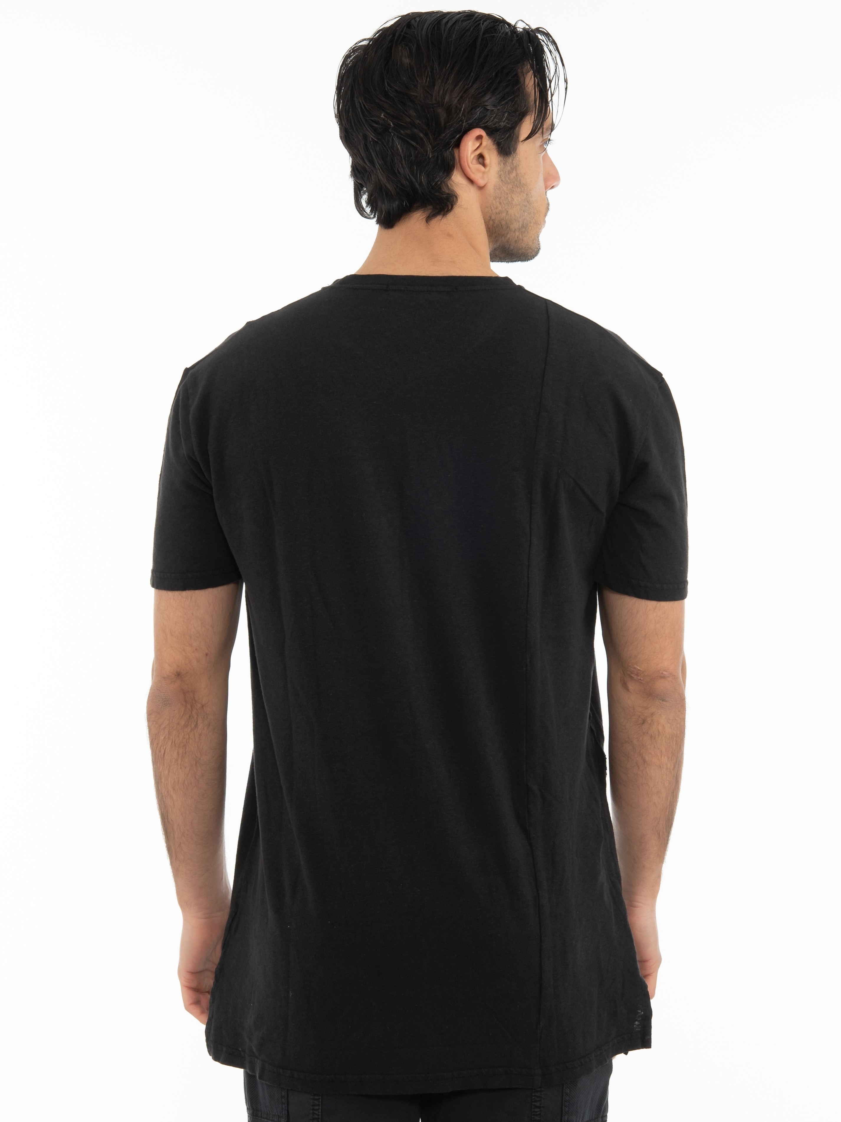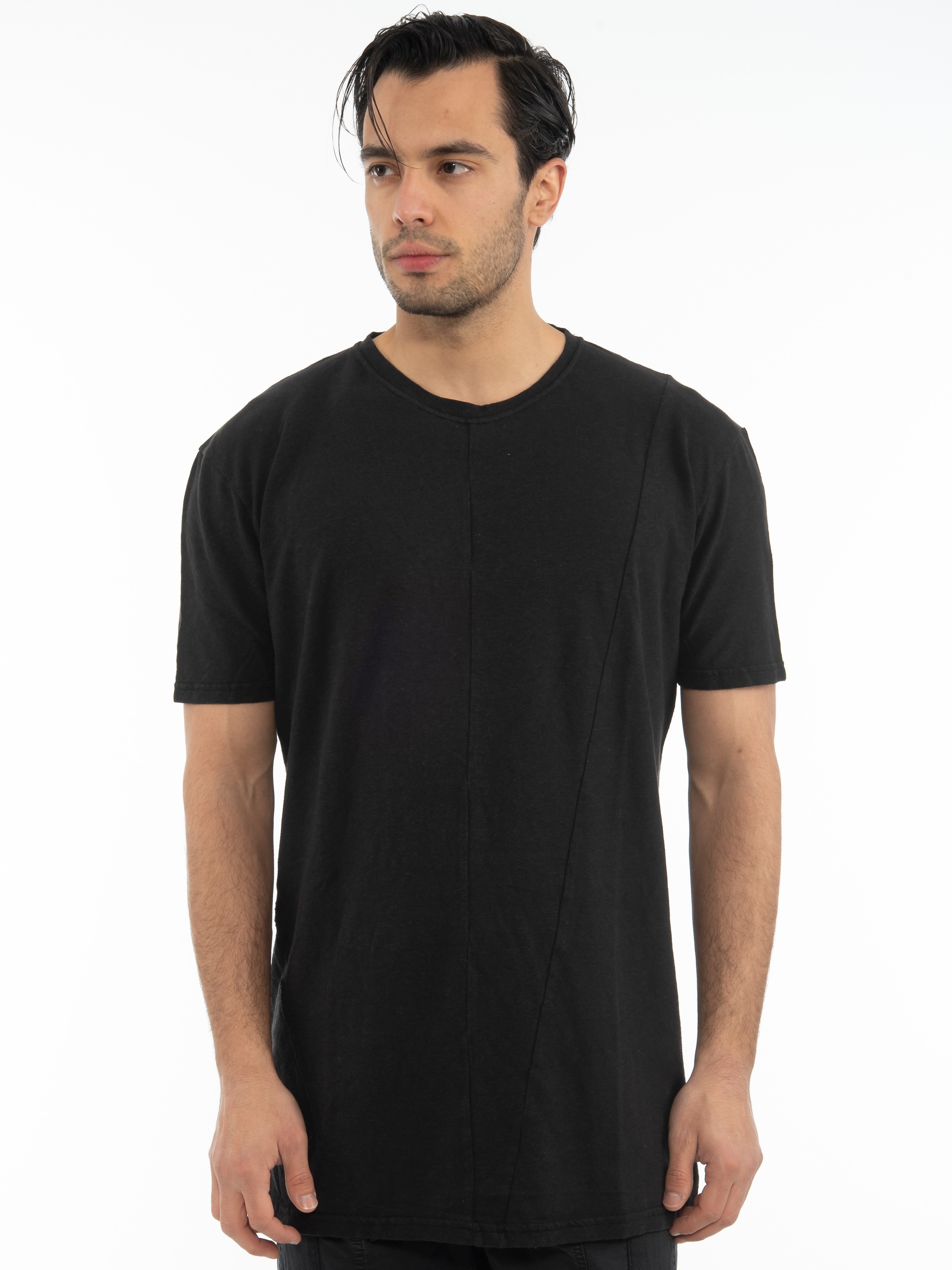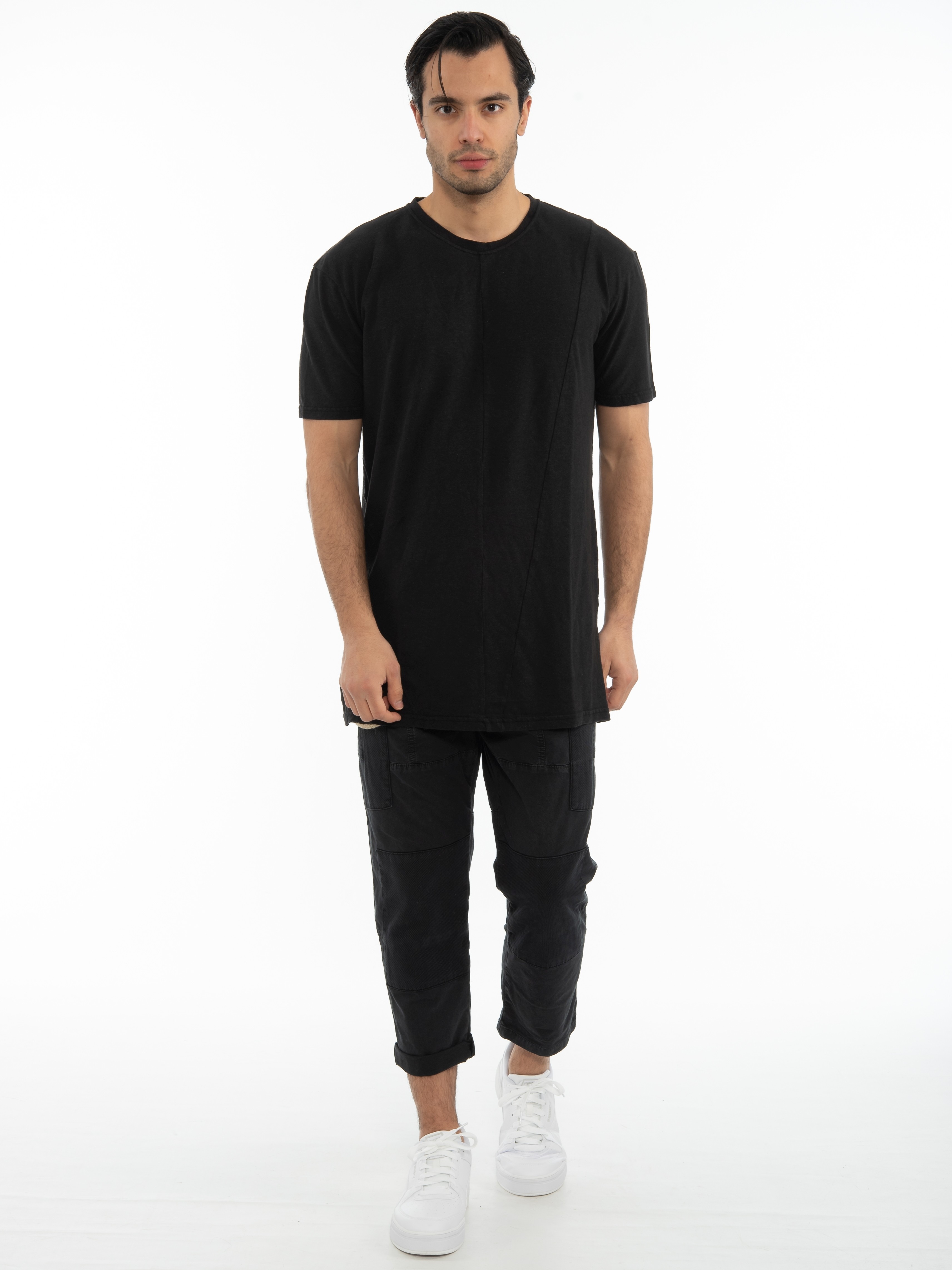Features : T-shirt in slim fit line with overalls and tear on the side. 45% cotton 55% linen