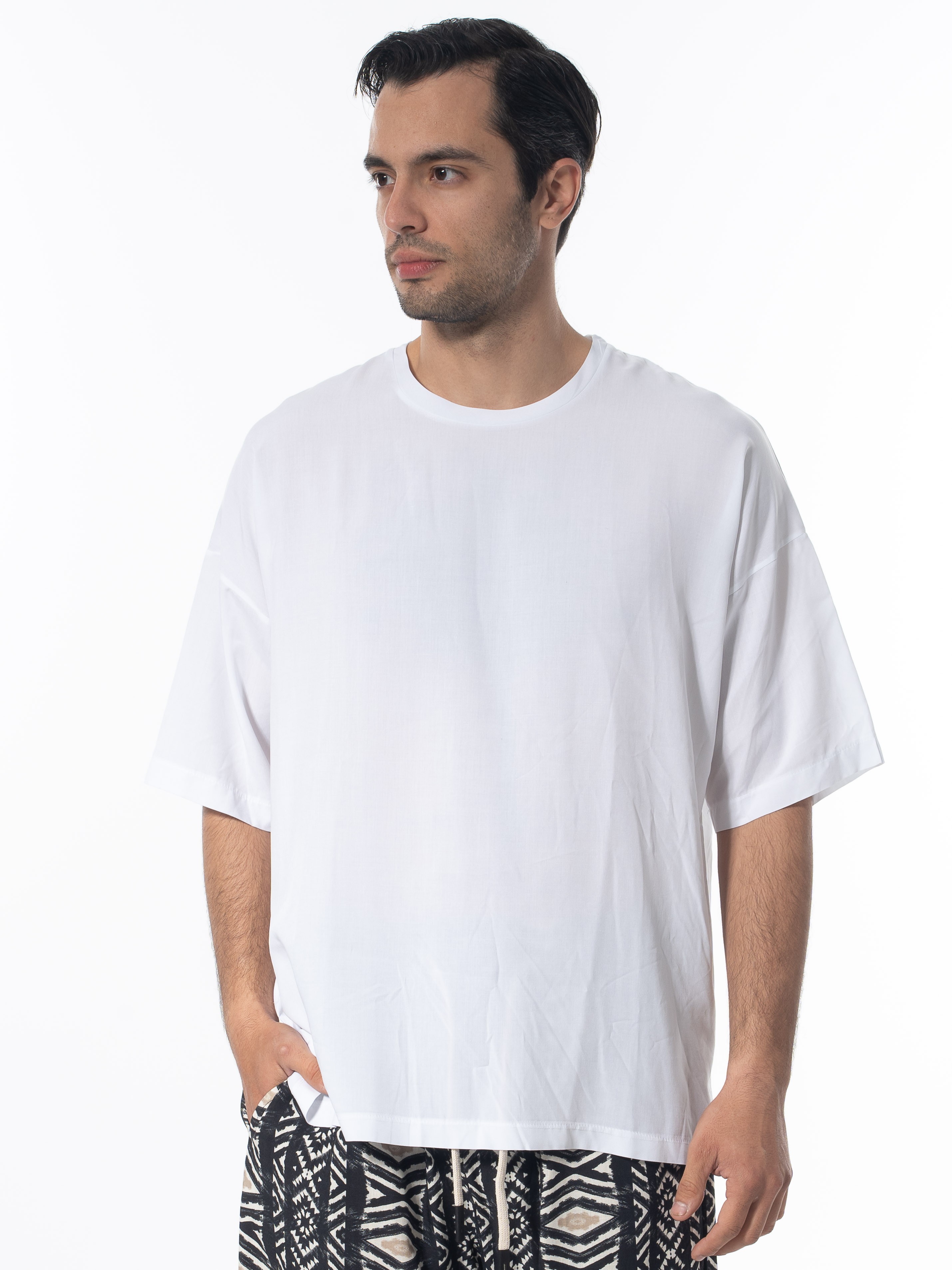 Characteristics : >: T-shirt in oversized fit line. 100% viscose