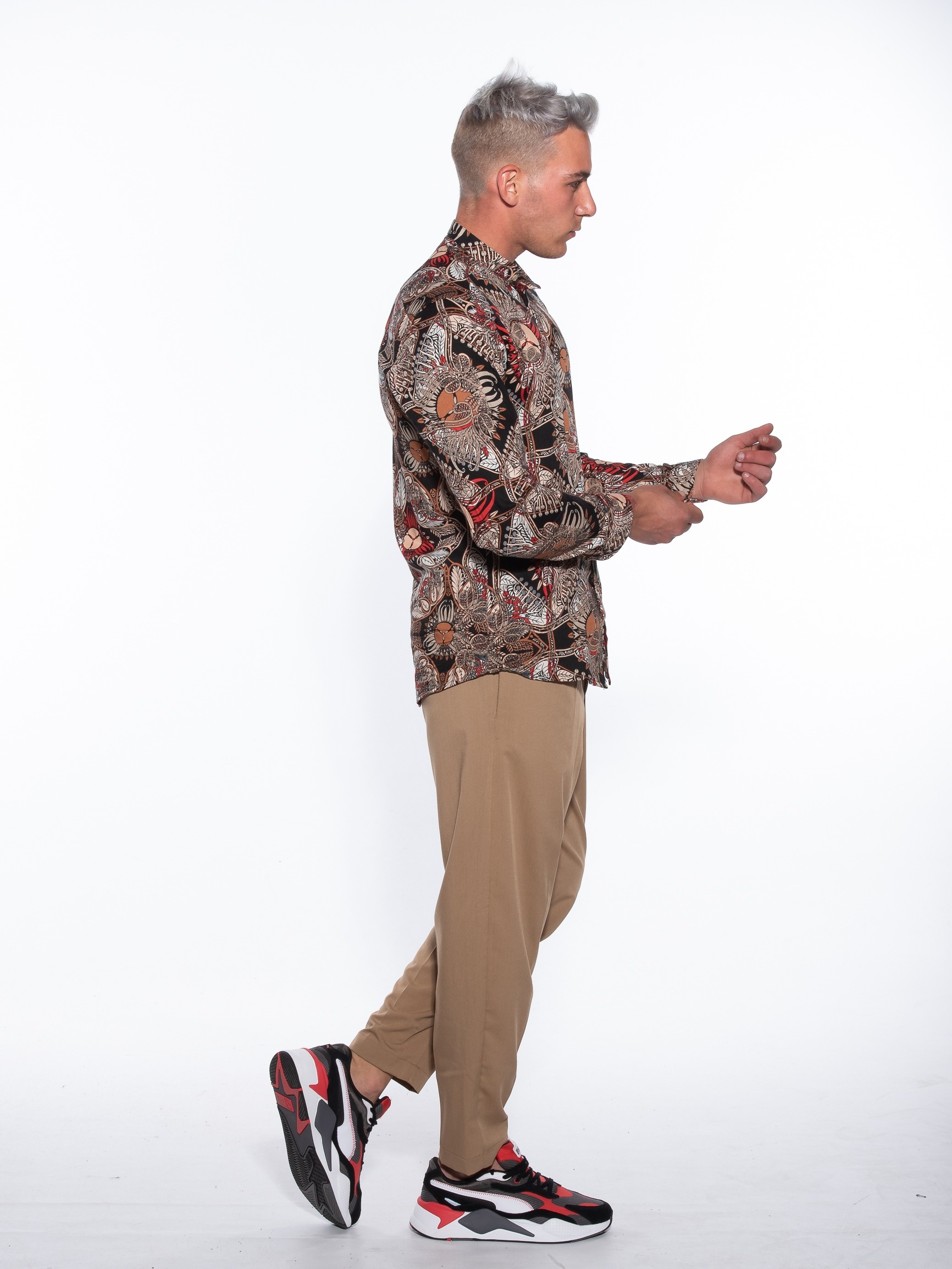 Features : Chino pants in regular fit line with elastic in the middle and detachable belt-drawstring. 76% polyester 21% visc 3% elastane
