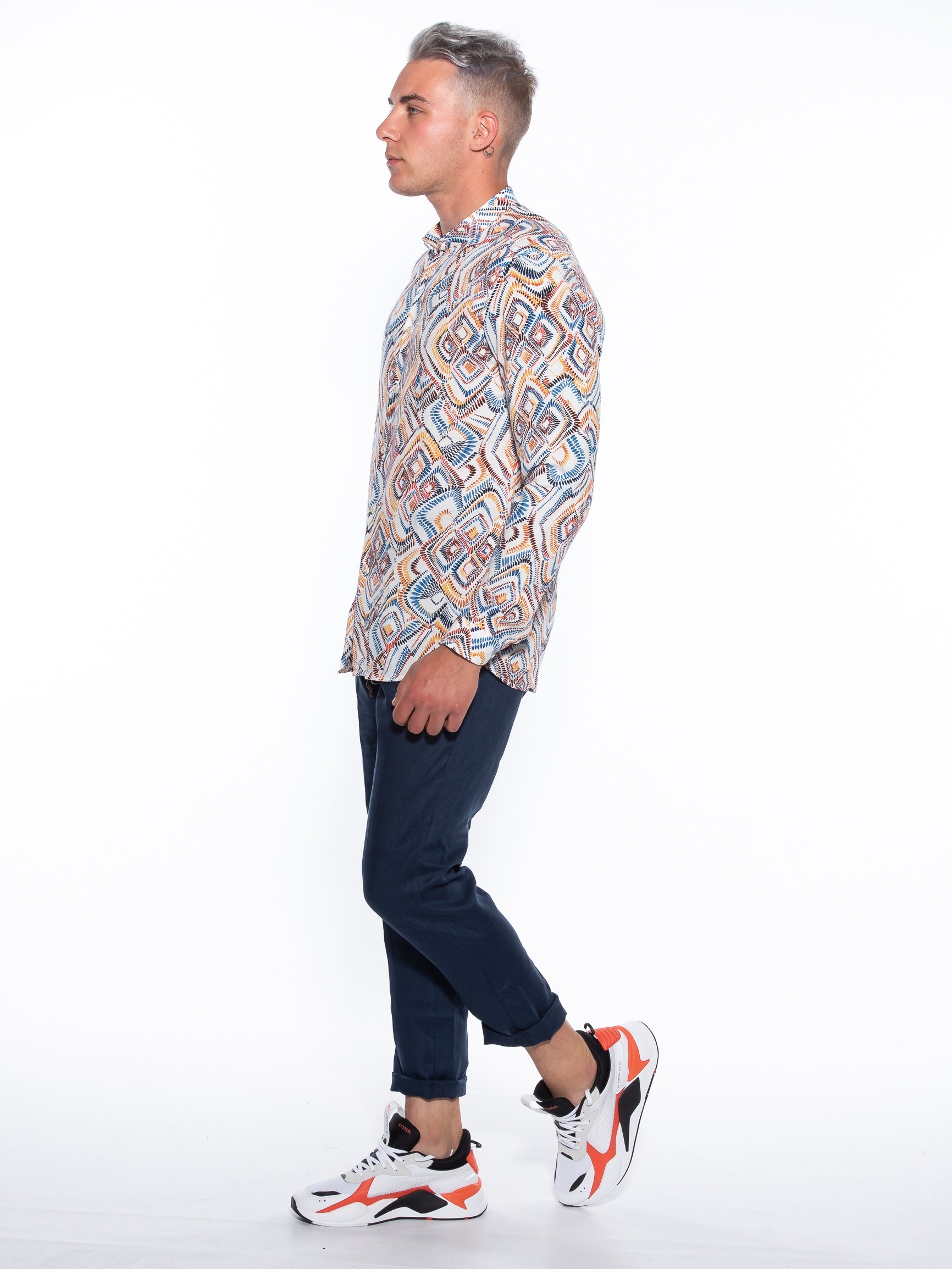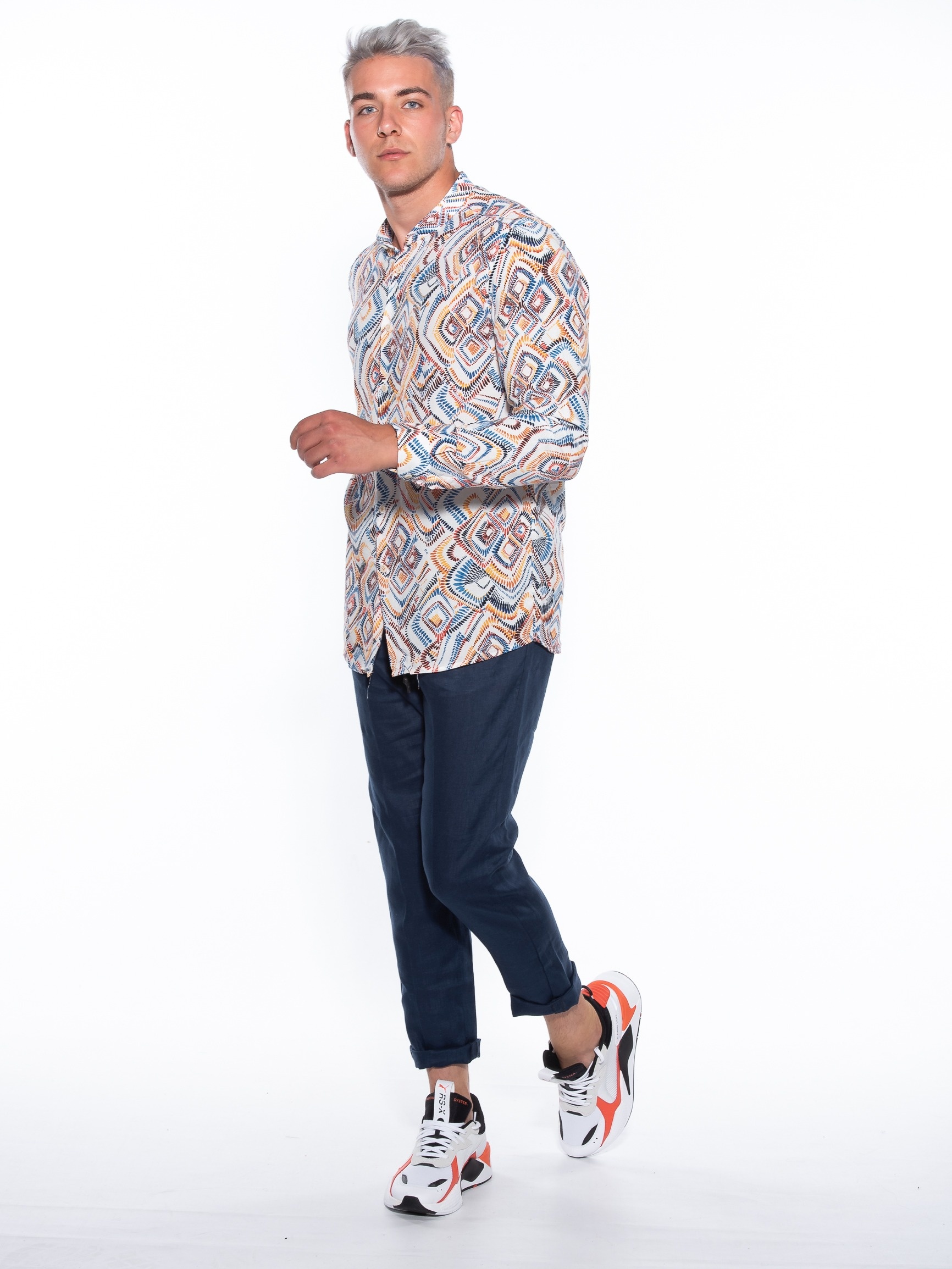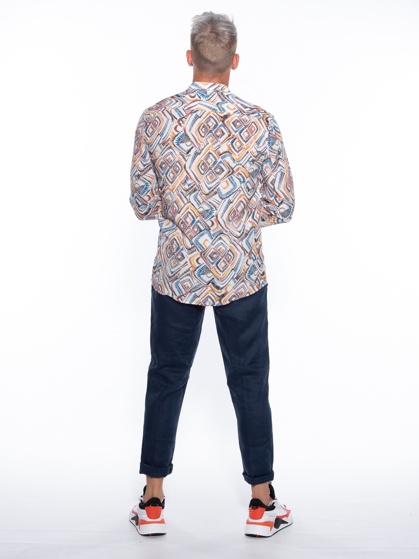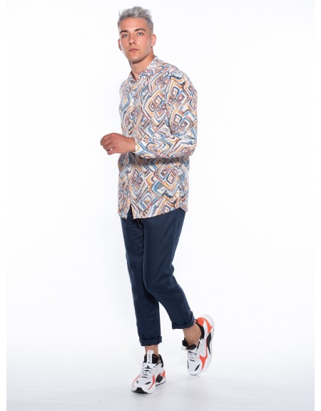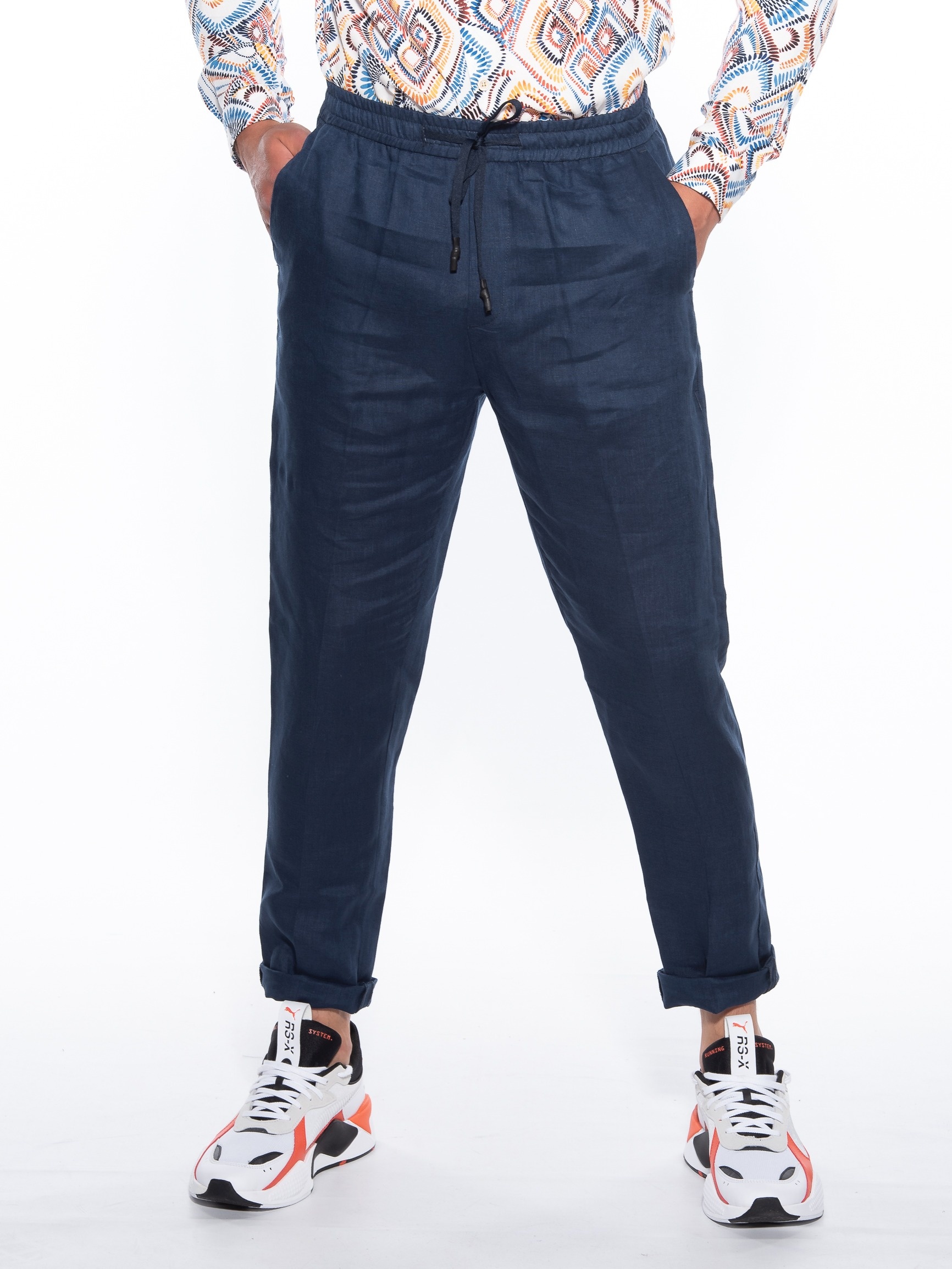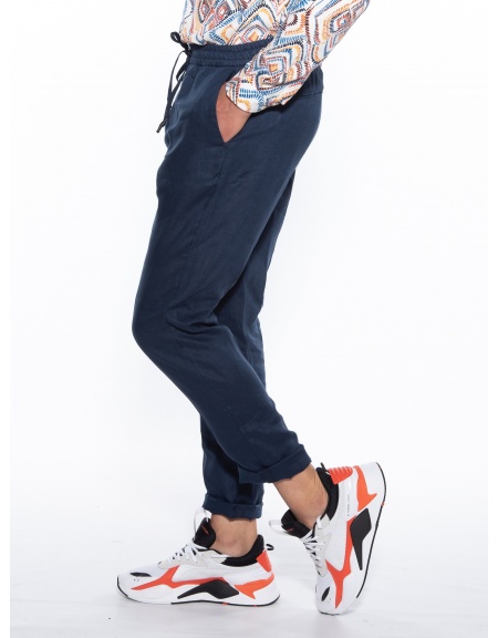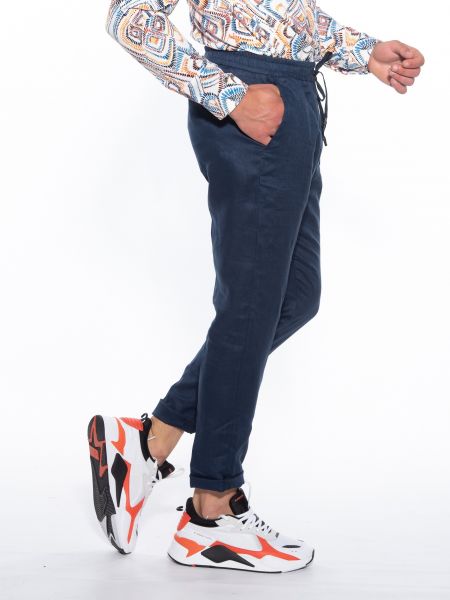 Features :>: Chino pants, with elastic in the middle in a slim fit line. 100% linen fabric