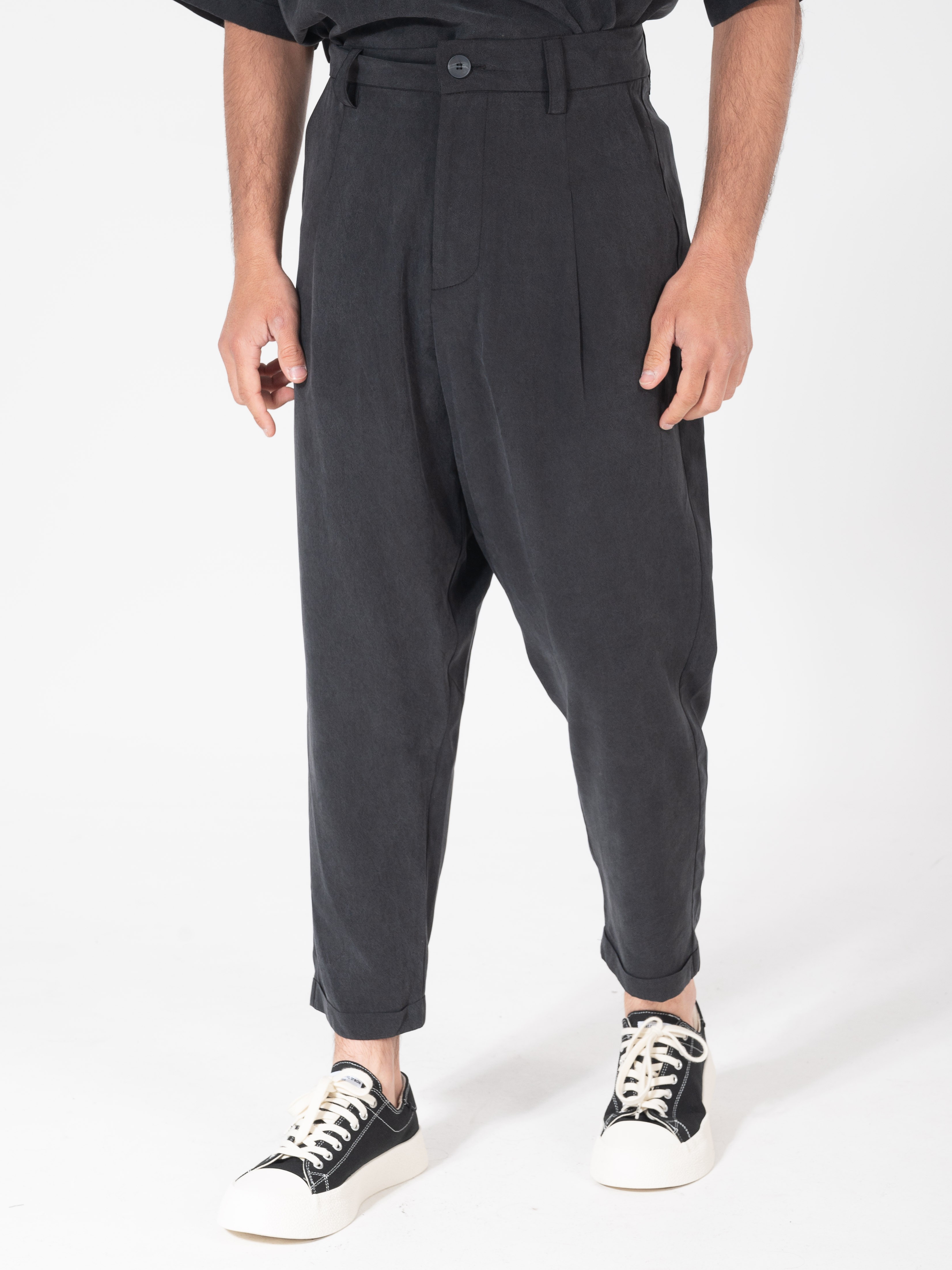 Features : Loose fit trousers with pleats. 100% tencel
