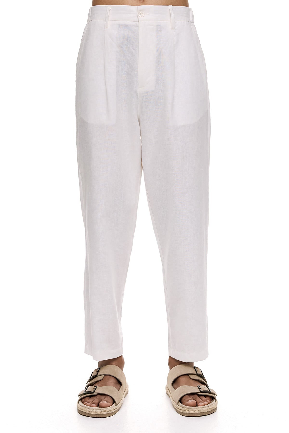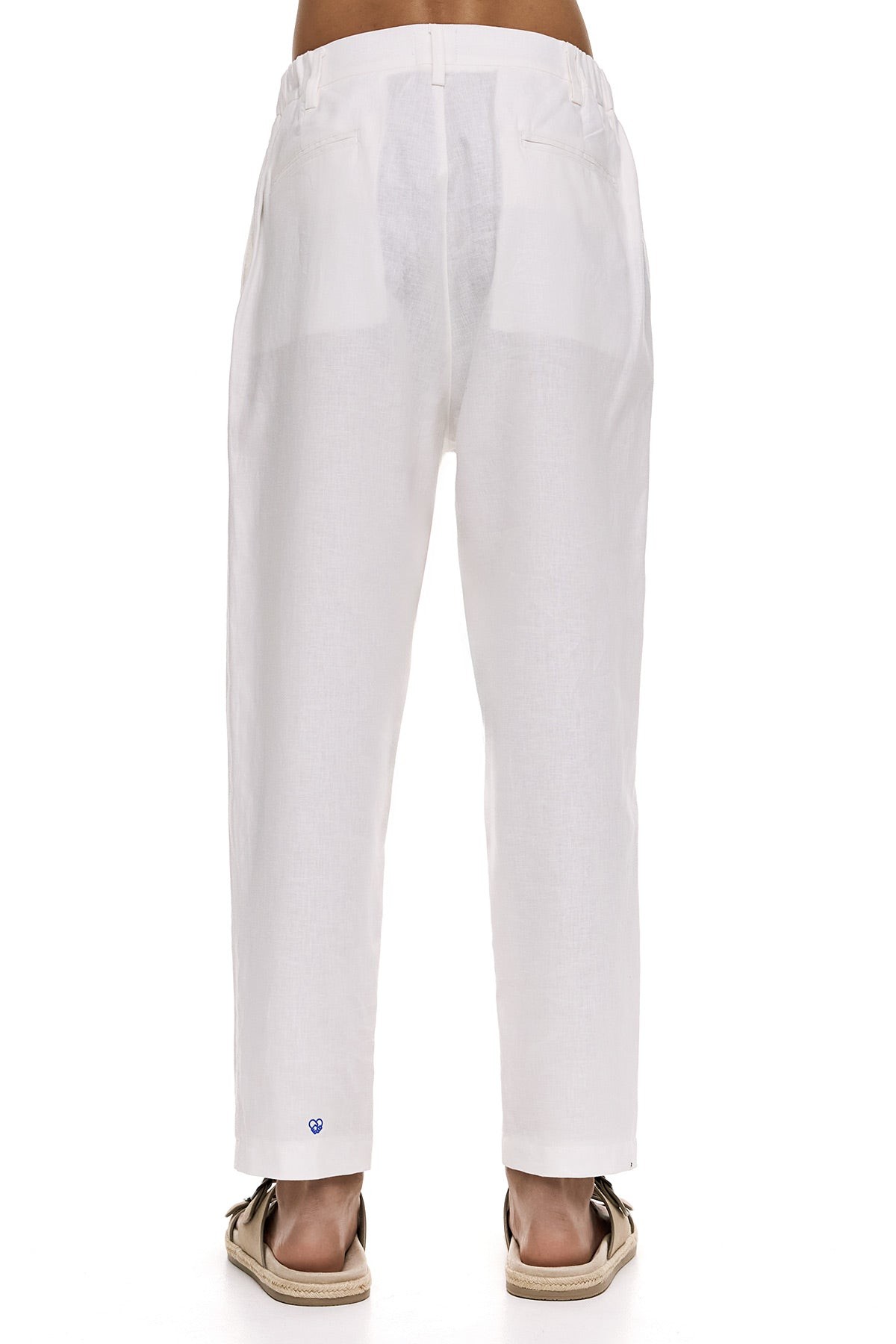 Features: Linen pants in regular fit with elastic at the waist and pleats on the side. 80% linen 20% bamboo