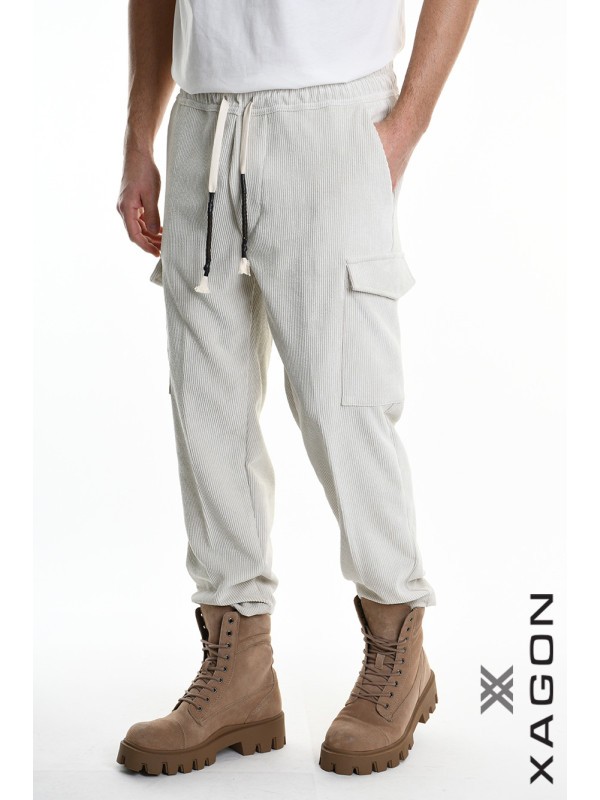 XAGON MAN Corduroy Cargo Pants 2ZUP70V Ecru