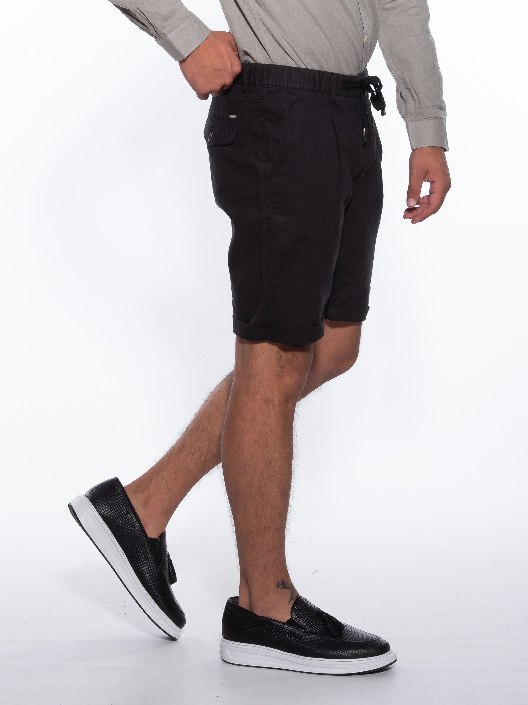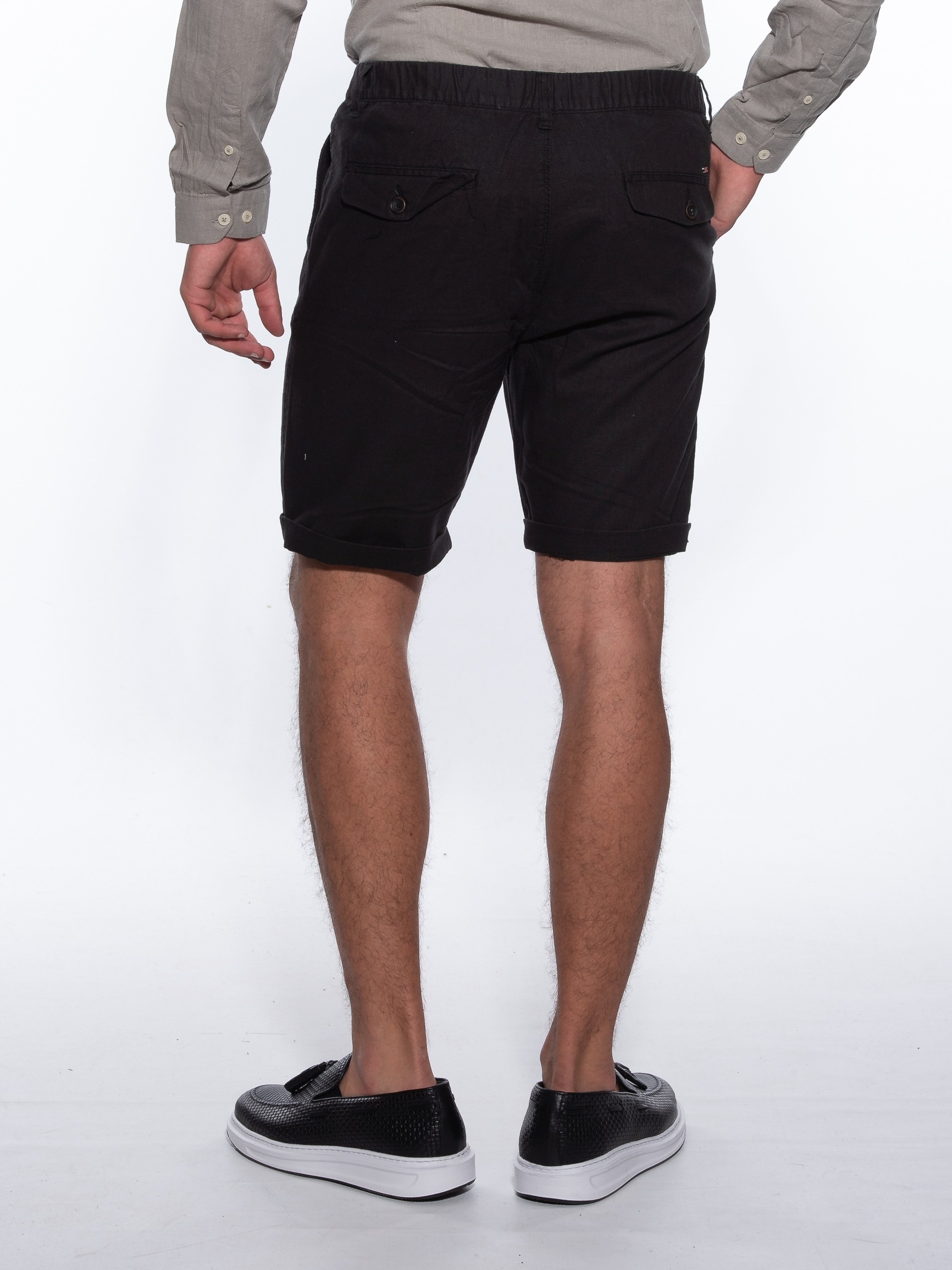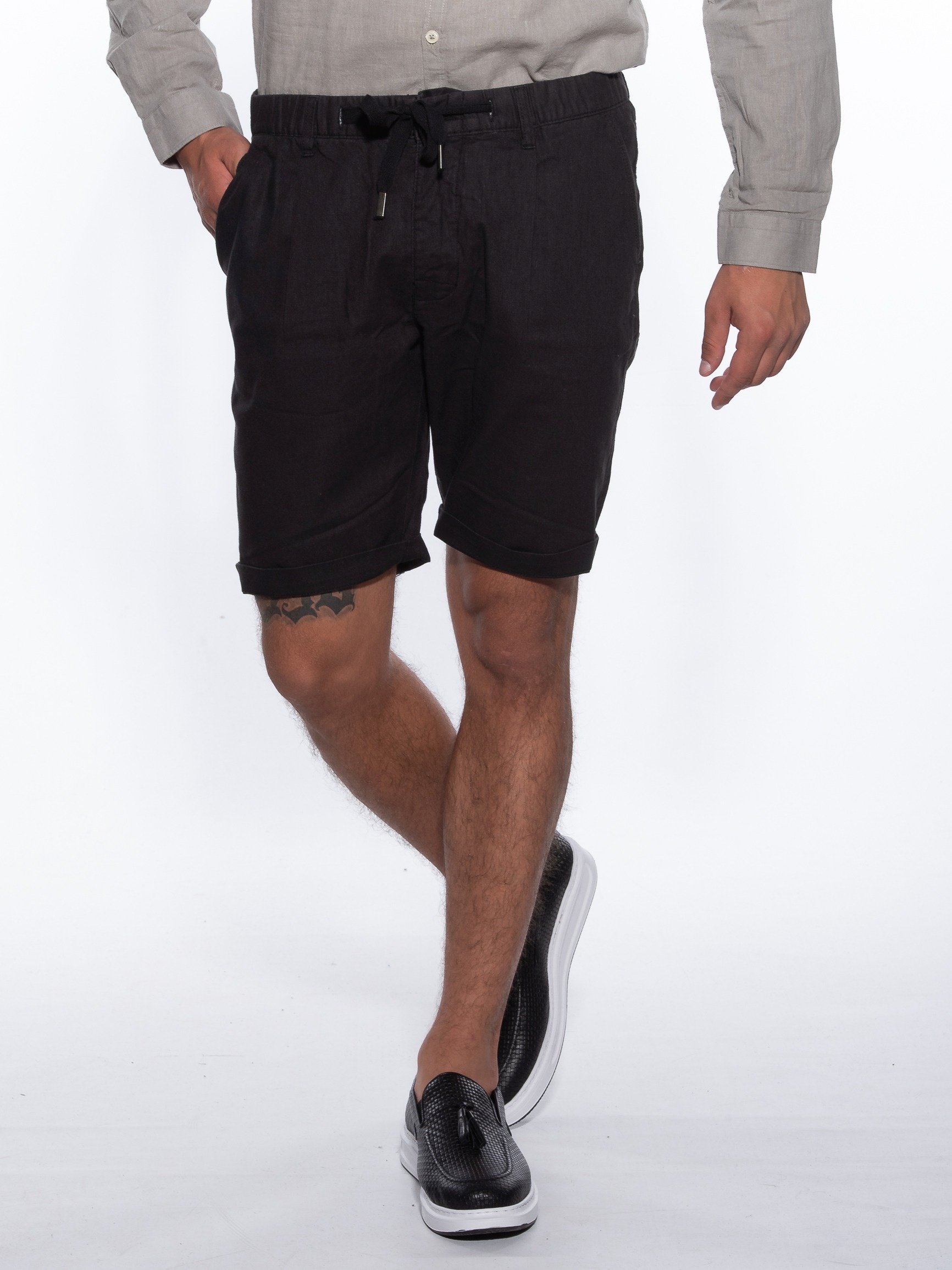 Features : Chino Bermuda shorts with lapel, back cap and elastic waist. Comes with a drawstring. In regular fit line. Composition 52% linen 48% cotton