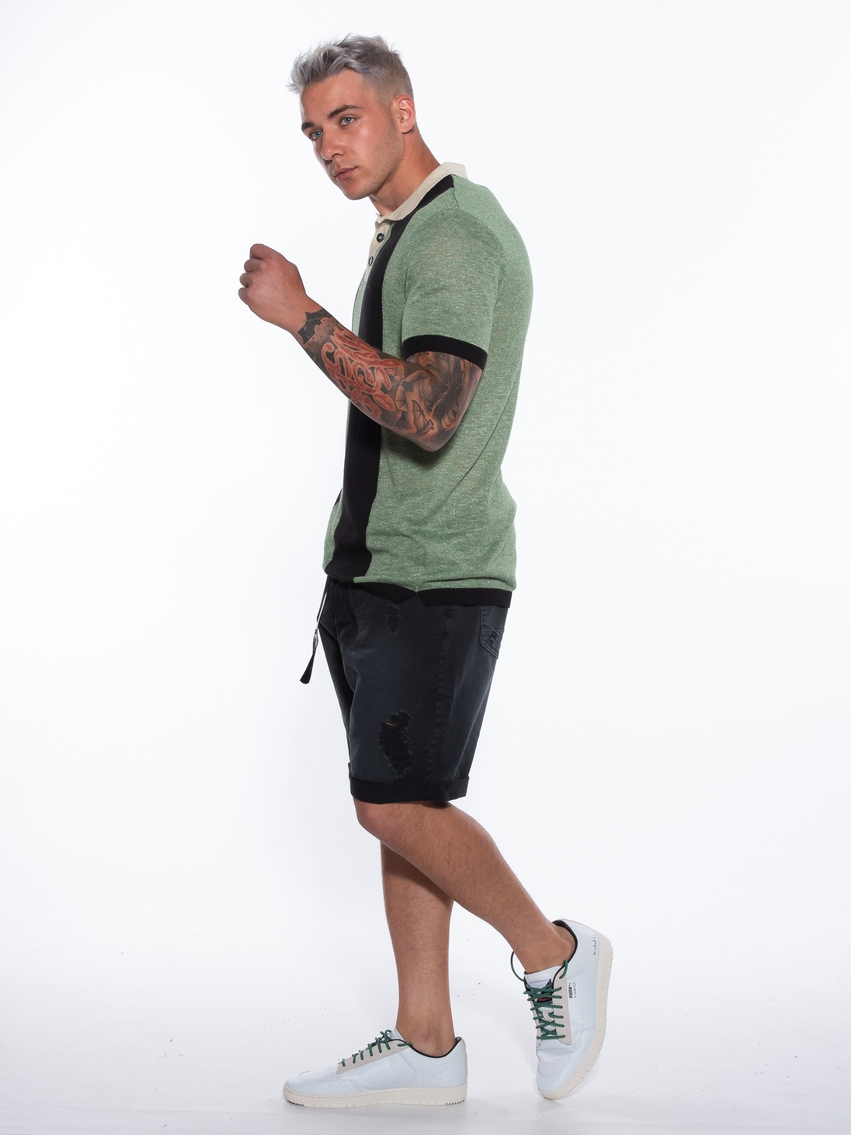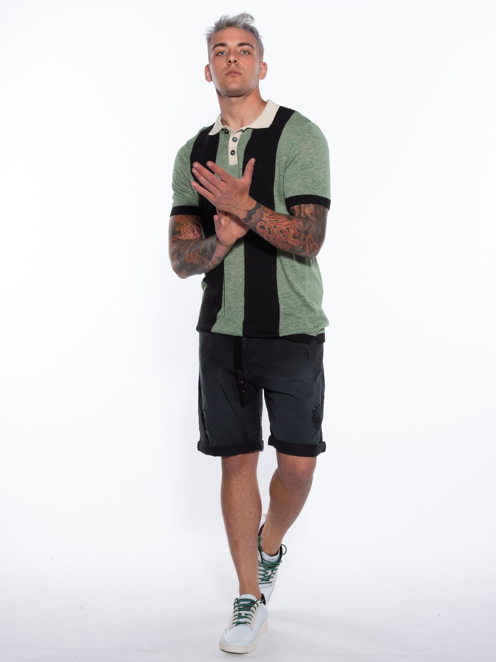 Features : Jean Bermuda with wear and tear in regular fit line and accessory belt. Composition 98% Cotton 2% elastane