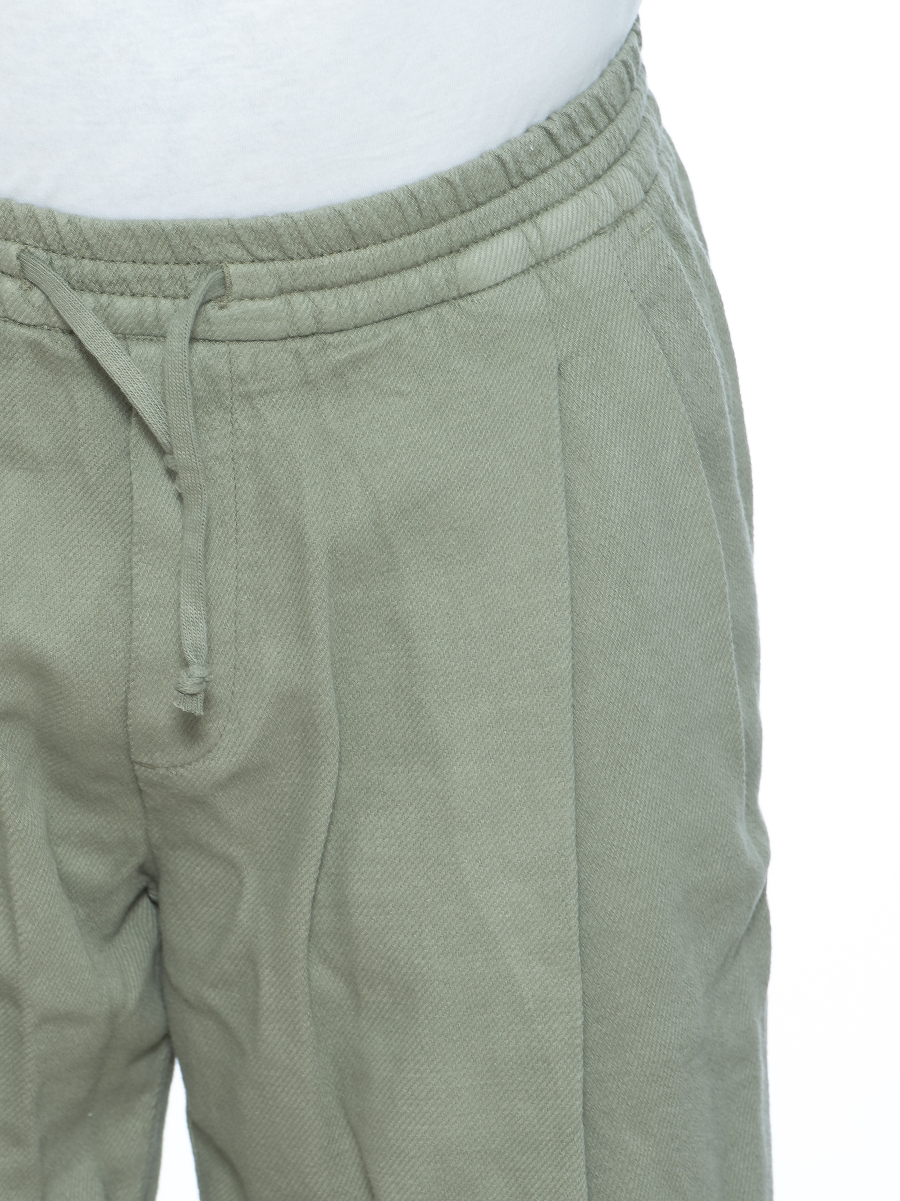 Features : Chino Bermuda in regular fit line with pleats and with elastic and integrated belt - drawstring in the middle. 100% cotton